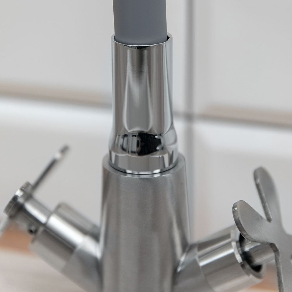 Излив смесителя для кухни представляет собой важный элемент системы водоснабжения, который отвечает за направление потока воды из крана. Этот излив имеет ряд преимуществ, которые делают его отличным выбором для вашей кухни. Гибкий силиконовый излив для кухонного смесителя с двумя режимами работы (душ и струя) удобен для мытья овощей, фруктов и посуды. За счет гибкости излива, вы без труда сможете вымыть объемную посуду, дотянуться до труднодоступных мест и любого содержимого мойки. Изготовлен из нержавеющей стали и силикона. Длина излива: 50 см. Излив может вращаться на 360 градусов. Цвет: серый. Такой излив прекрасно подойдет для любого кухонного смесителя и сделает мытье посуды более комфортным.
