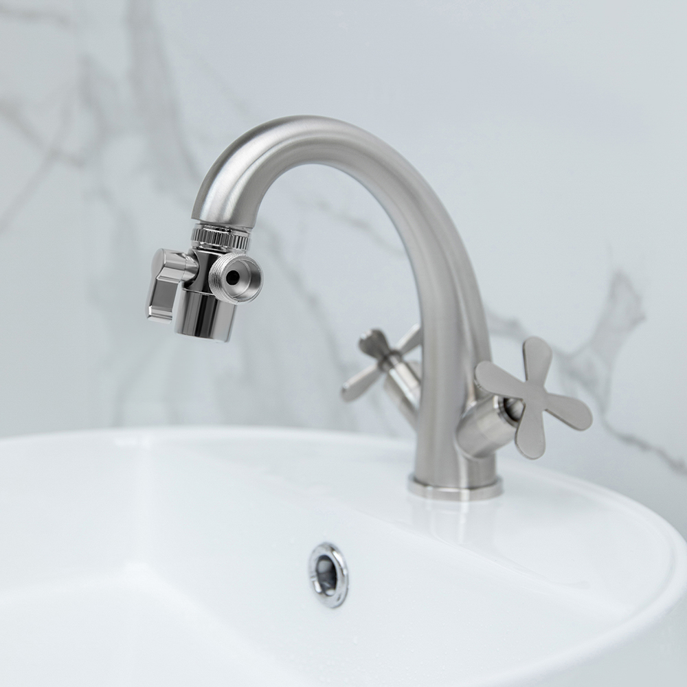 Хотите превратить ваш обычный смеситель в многофункциональное устройство для душа? Дивертор – идеальное решение! Переходник для смесителя позволяет подключить душевой гарнитур к вашему существующему смесителю, расширяя его функциональность. Легко переключайте поток воды между душевой лейкой и изливом с помощью удобной ручки-переключателя. Такой механизм упрощает использование смесителя и повышает комфорт принятия водных процедур или использования воды в других целях. Корпус изделия изготовлен из прочного цинкового сплава, что гарантирует долгий срок службы и устойчивость к коррозии. Экономьте воду без потери напора благодаря встроенному аэратору, который смешивает воду с воздухом, создавая мягкий и приятный поток. Подключите душевой гарнитур за считанные минуты без сложных инструментов и дополнительных компонентов. Переходник обеспечивает надежное и герметичное соединение между смесителем и душевым гарнитуром, исключая риск утечек или проблем с водоснабжением.
