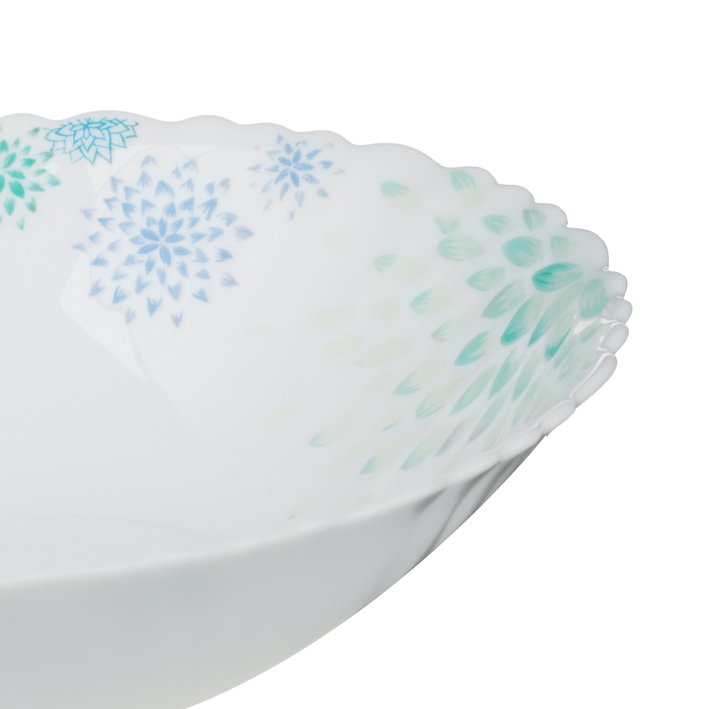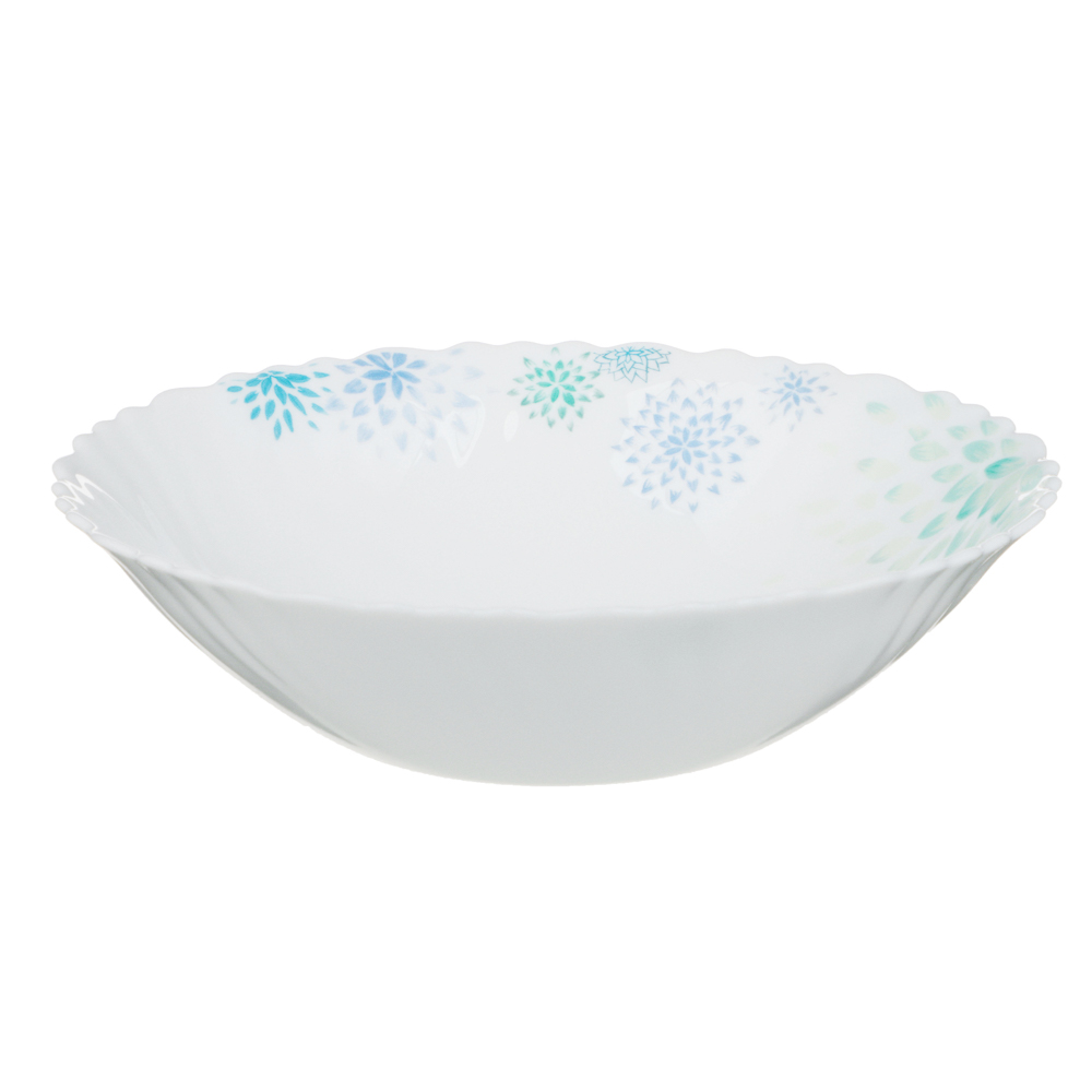Салатник из опалового стекла 19 см MILLIMI «Асиано» – это эстетичная посуда из высокопрочного стекла для подачи салатов, бутербродов и других закусок на праздничный или повседневный стол. Белая посуда с цветочным рисунком впишется в любой стиль сервировки, будет выразительно и гармонично смотреться на фоне белой или цветной скатерти. Изделие устойчиво к образованию сколов и царапин, легко моется, не темнеет с течением времени, поэтому прослужит долго.