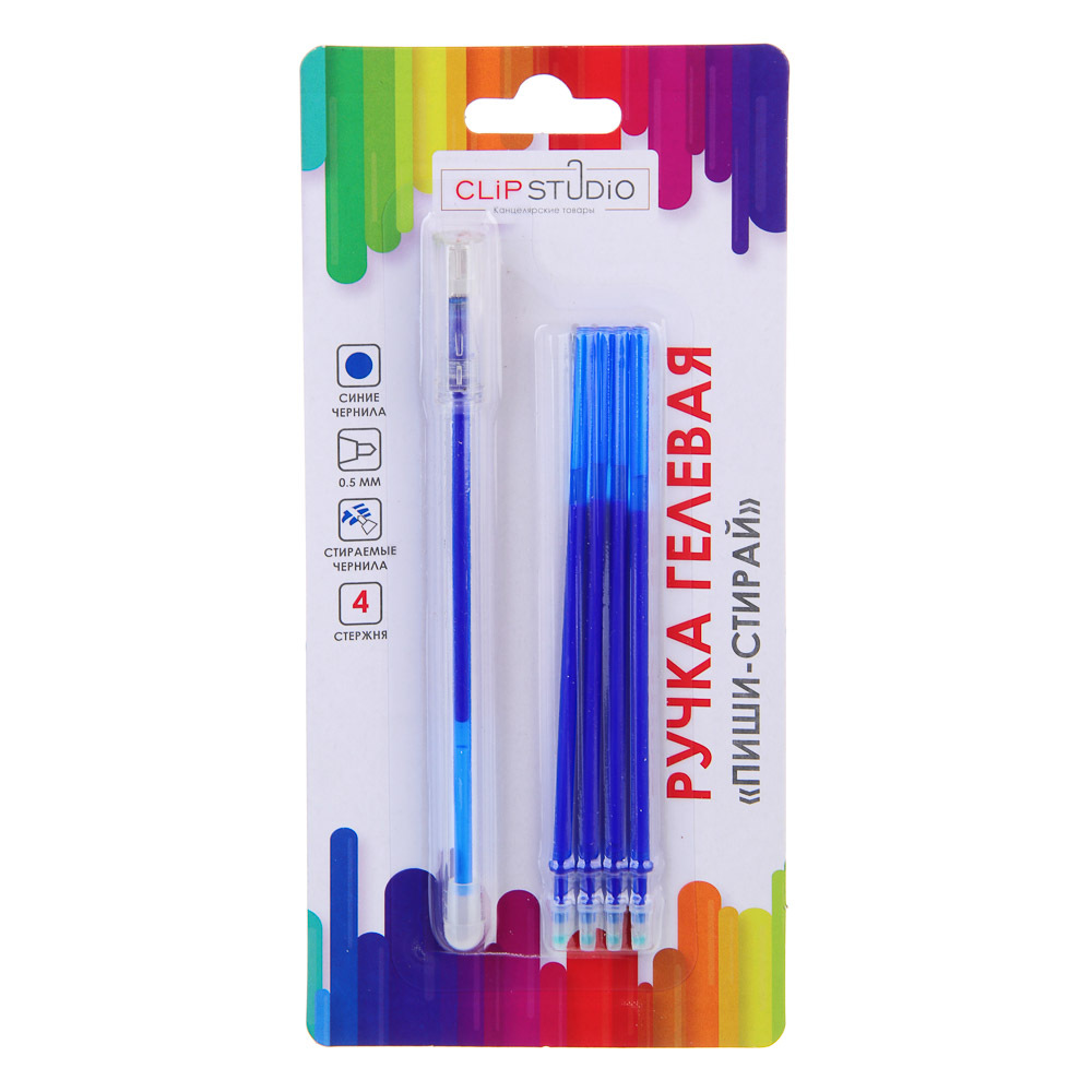 Гелевая ручка «Пиши-стирай» ClipStudio с синим стержнем обеспечит чистое и аккуратное письмо, ведь ошибки не придется зачеркивать, достаточно просто стереть и написать правильно. Имеет оптимальную толщину корпуса, комфортно ложится в руку, не вызывая усталости даже при длительном письме. Стержень с яркими чернилами плавно скользит по бумаге, не пачкает и не царапает лист. Поставляется в наборе с 4 запасными стержнями.Чтобы купить ручку «Пиши-стирай», добавьте нужное количество в корзину и оформите заказ.