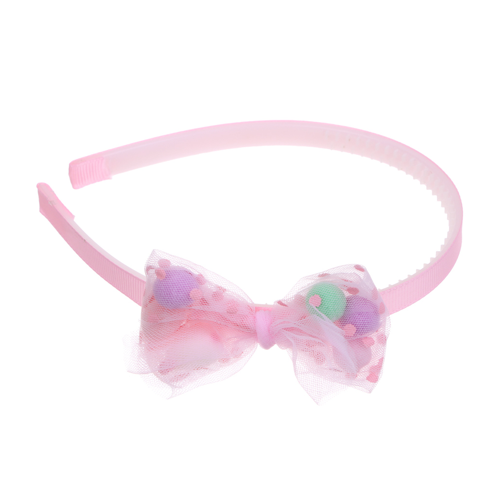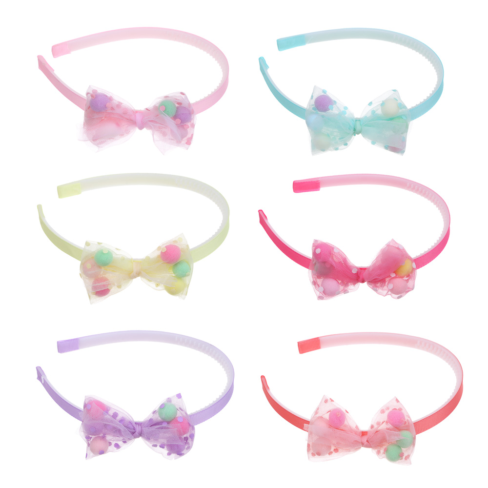 ЮНИLOOK Ободок для волос с бантом, пластик, полиэстер, 1см, 6 цветов, ACS-01