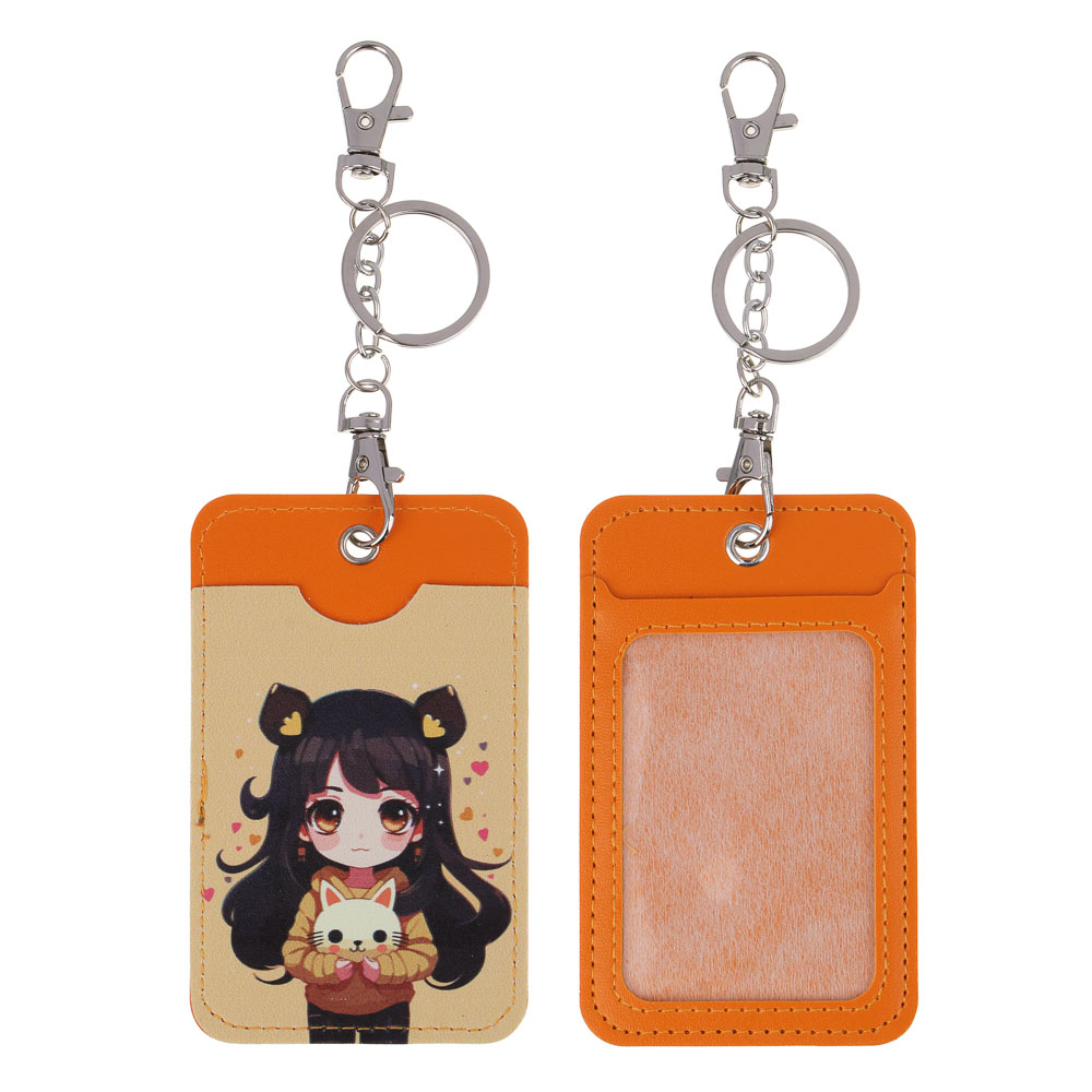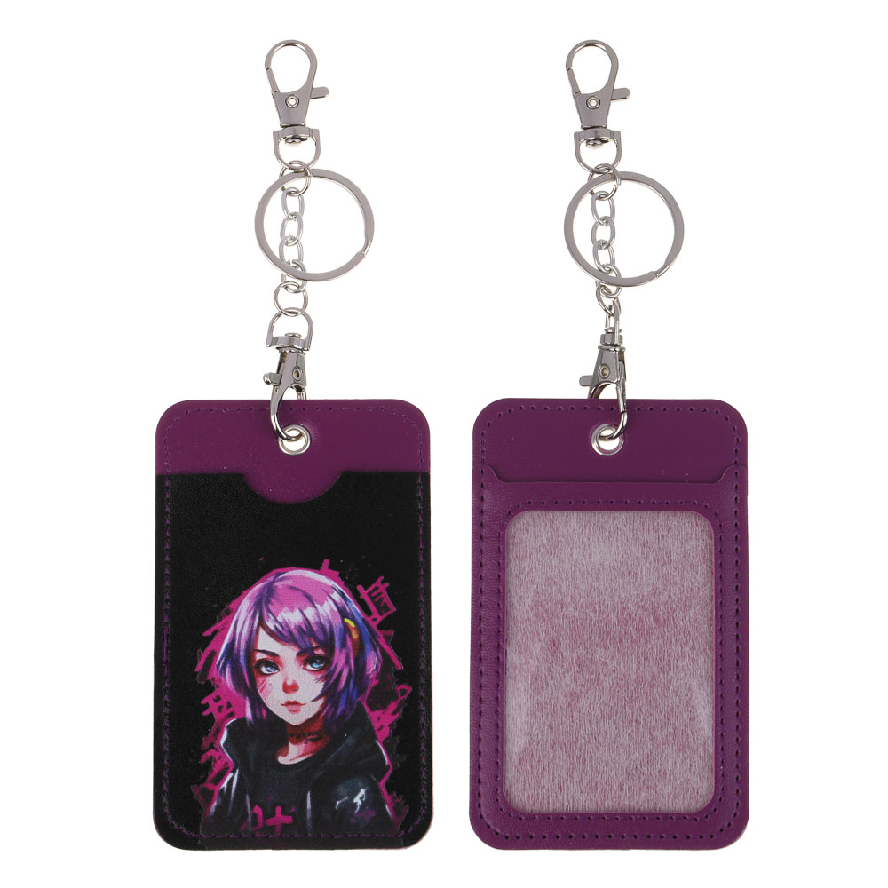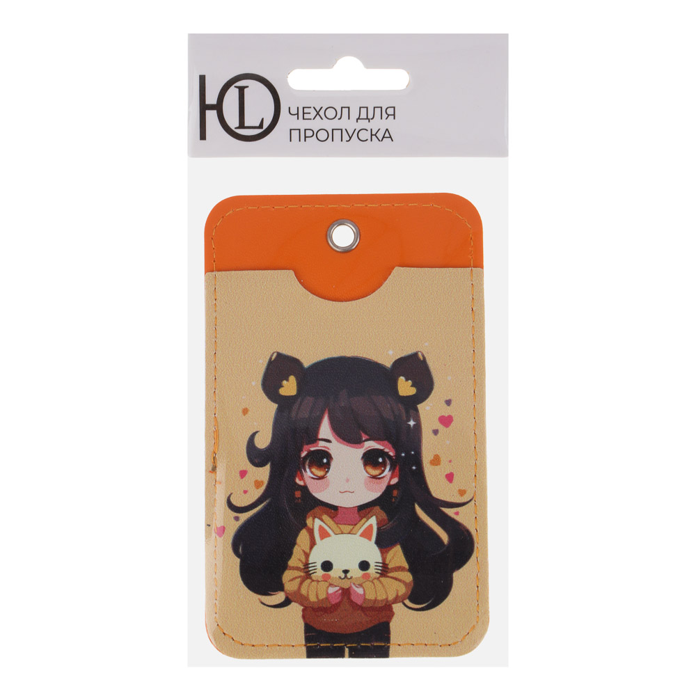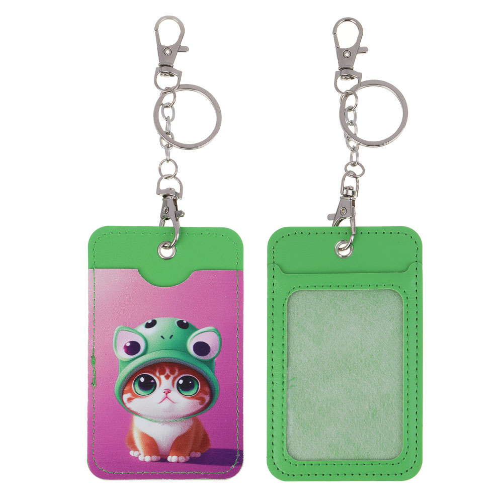 ЮL Чехол для пропуска двусторонний с кольцом и карабином, ПВХ, металл, 11х6,7см, 6 дизайнов