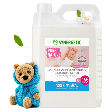 Кондиционер-ополаскиватель для детского белья SYNERGETIC "Нежное прикосновение" защищает одежду от выцветания и дарит ей нежнейший аромат, окутывая вкусными нотками свежести небольшое пространство вокруг. Биоразлагаемый кондиционер-ополаскиватель для детского белья SYNERGETIC "Нежное прикосновение" – высокоэффективное средство, бережно ухаживающее за всеми типами ткани, в том числе деликатными, и придающее особую мягкость и нежность белью после стирки. Гипоаллергенный кондиционер-ополаскиватель нейтрализует остатки средств для стирки на ткани, помогает сохранить структуру ткани, защищая волокна от изнашивания и повреждения. Средство обладает антистатическим эффектом. Комплекс растительных К-тензидов обеспечивает легкую глажку белья после стирки и высыхания. Подходит для ручной и машинной стирки, полностью выполаскивается из тканей. Кондиционер безопасен для белья новорожденных и одежды людей с чувствительной кожей. Не содержит ароматизаторов и красителей. Международный экологический се