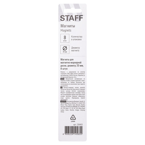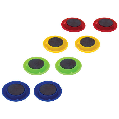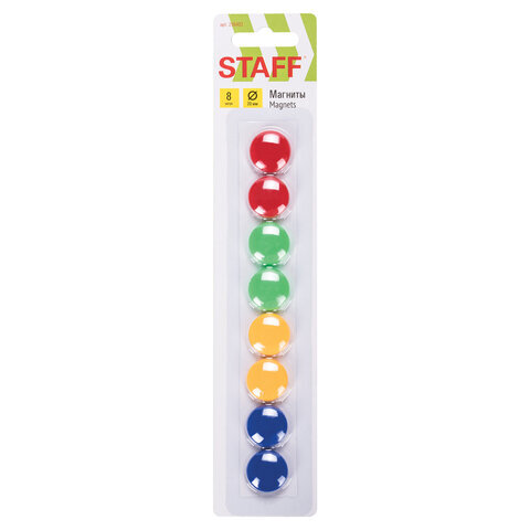 Магниты STAFF круглой формы малого диаметра с пластиковым покрытием для магнитно-маркерных досок. Диаметр магнита составляет 20 мм. 8 штук в комплекте. Разноцветные магниты помогут надежно прикрепить листы бумаги к магнитно-маркерной поверхности досок, витрин и флипчартов. Надежно удерживаются на любой железной или стальной поверхности. Поставляются в удобной блистерной упаковке с европодвесом. Это товар эконом-сегмента, поэтому он отличается привлекательной ценой. Товар обладает базовым набором характеристик и простой упаковкой, при этом полностью соответствует основным требованиям потребителей.