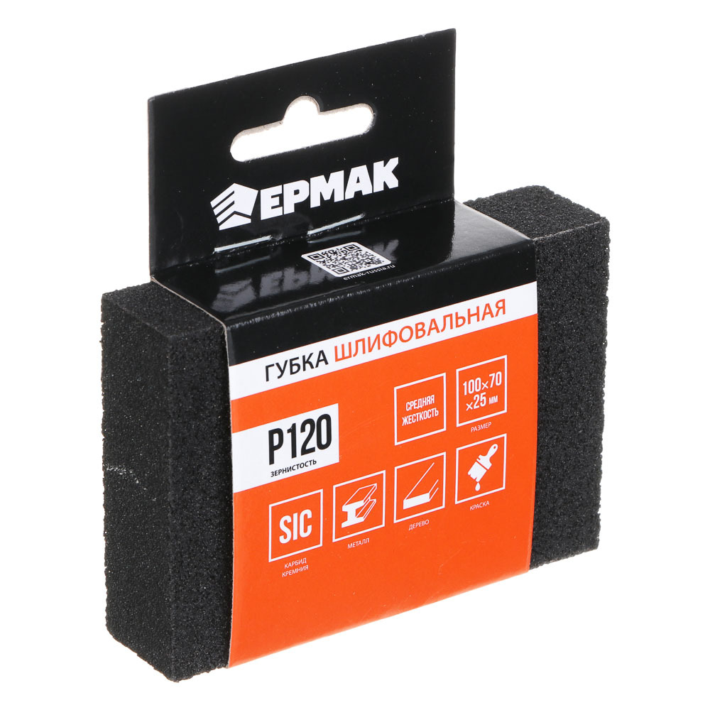 Шлифовальная губка ЕРМАК размером 100х70х25 мм, зернистость Р120. Подходит для ручной шлифовки различных материалов, в том числе дерева, металла, пластика и т. д. Позволяет эффективно устранять неровности, шероховатости и старые покрытия.