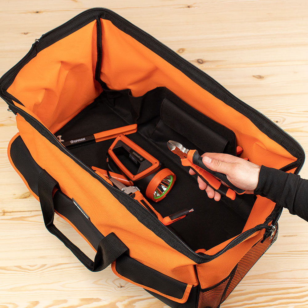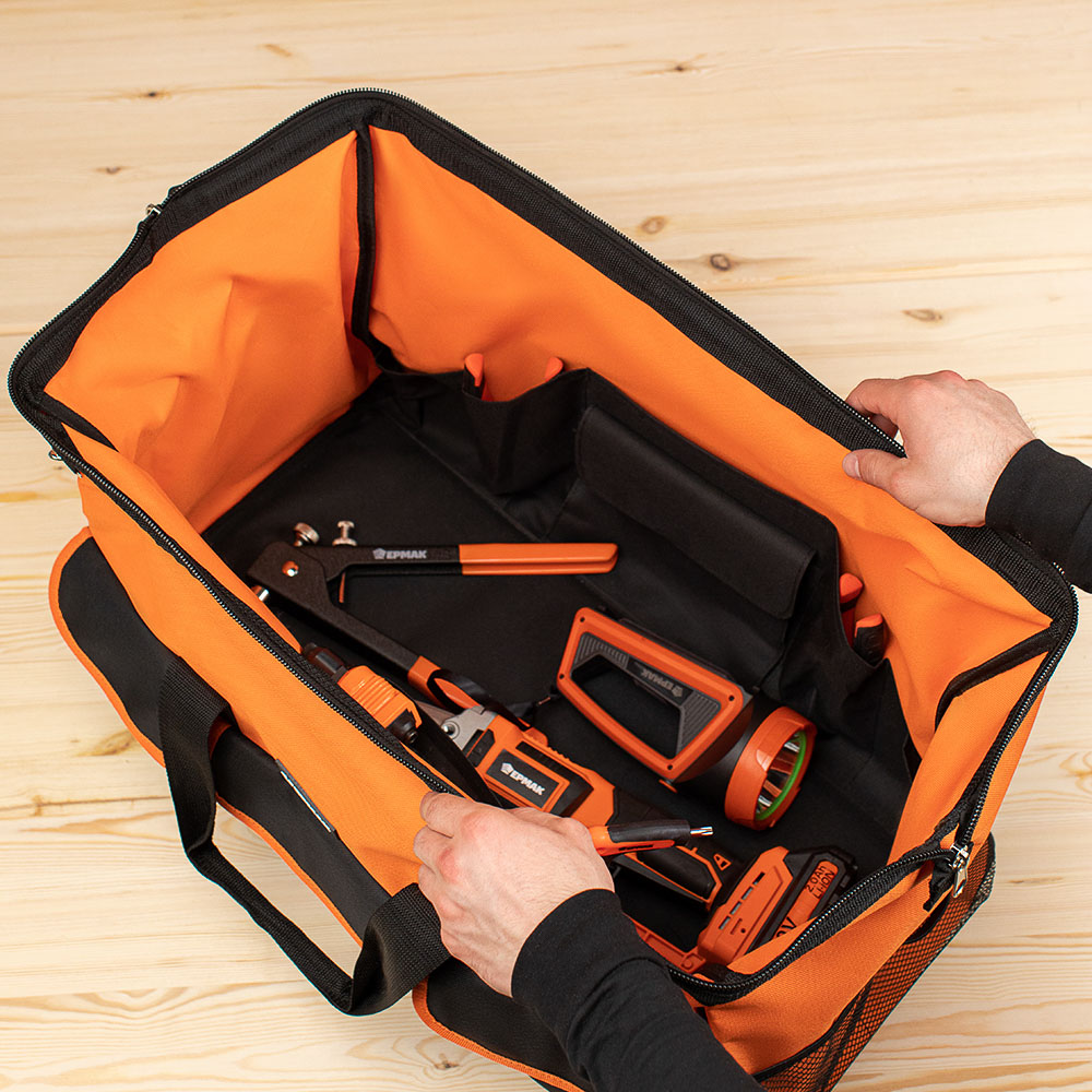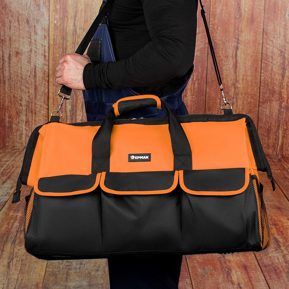 Сумка для инструмента ЕРМАК с 25 карманами и наплечным ремнем будет полезна слесарям, монтажникам, электрикам, а также автомобилистам. В основном отделении, внутренних и внешних карманах поместятся все необходимые инструменты.