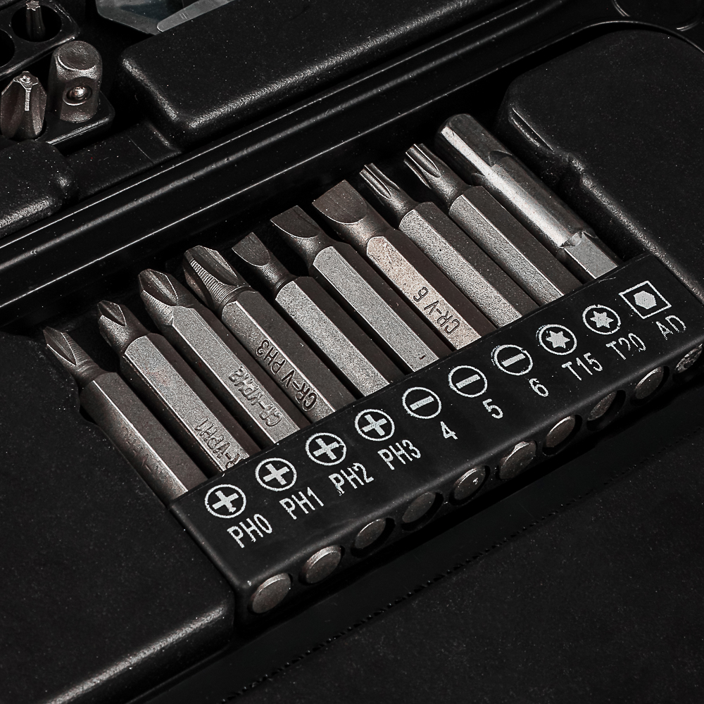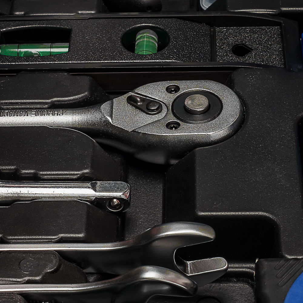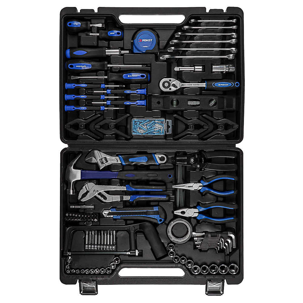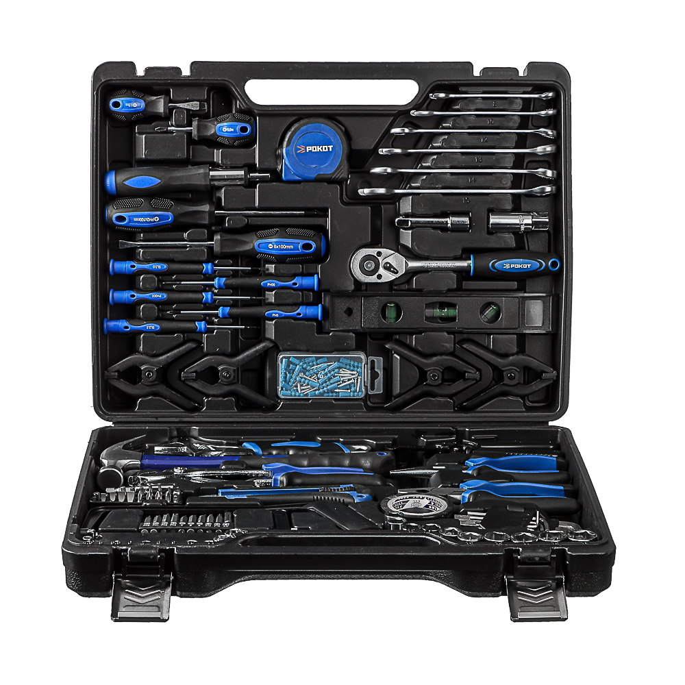 Набор инструмента РОКОТ из 168 предметов в жестком пластиковом кейсе – это качественные автоинструменты из закаленной стали, которые пригодятся не только в гараже, но и в доме для ремонта и монтажа электрических и сантехнических систем, сборки мебели. В составе набора: рулетка, отвертка для бит с трещоткой, отвертки PH2 и SL6, отвертки для точечных работ, нейлоновые зажимы, комбинированные ключи, уровень, трещотка, удлинитель, свечные головки, биты, переходники для торцевых головок, а также разводной ключ, переставные клещи, пассатижи, длинногубцы, молоток, инструмент для зачистки проводов, ножовка со сменными полотнами, пластиковые хомуты, шестигранные ключи, строительный нож, изолента, адаптер шестигранный и набор саморезов и дюбелей. Все предметы имеют качественное исполнение, надежные и прочные. Кейс выполняет функцию органайзера, облегчая поиск нужного инструмента, а также незаменим для хранения и транспортировки.
