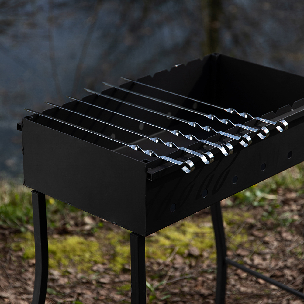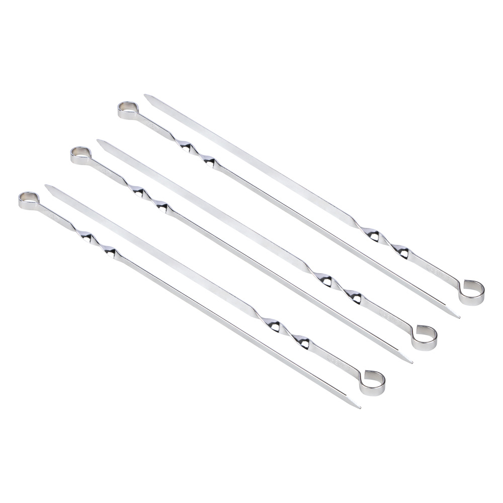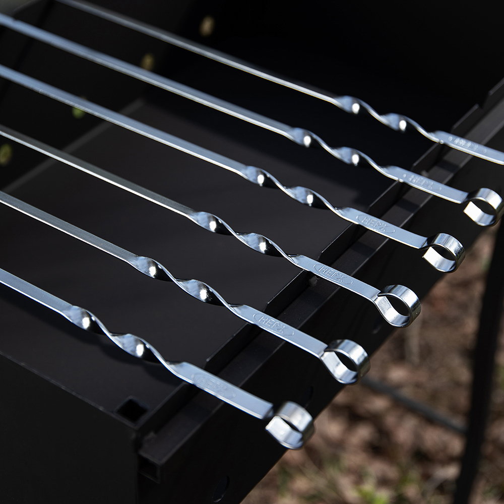 Набор шампуров GRILLBOOM 45х1x0,18 см – это шесть изделий из нержавеющей стали. Подходят практически для любых мангалов, имеют удобную форму и острый конец для нанизывания кусочков мяса. Прочные, не прогибаются под весом продуктов, устойчивы к воздействию высоких температур, не деформируются и не ржавеют. За ними просто ухаживать: достаточно промыть их под водой с любым моющим средством для посуды.