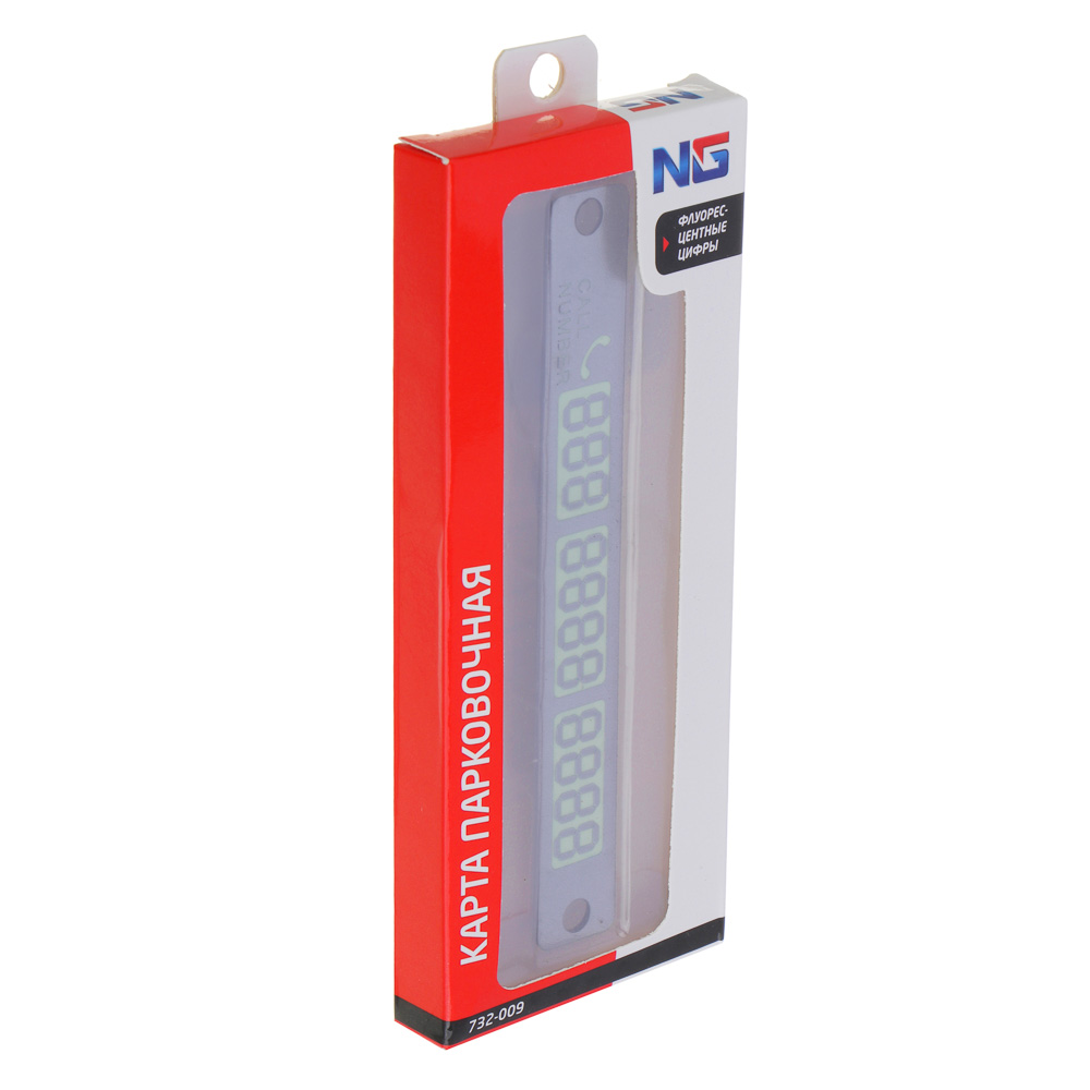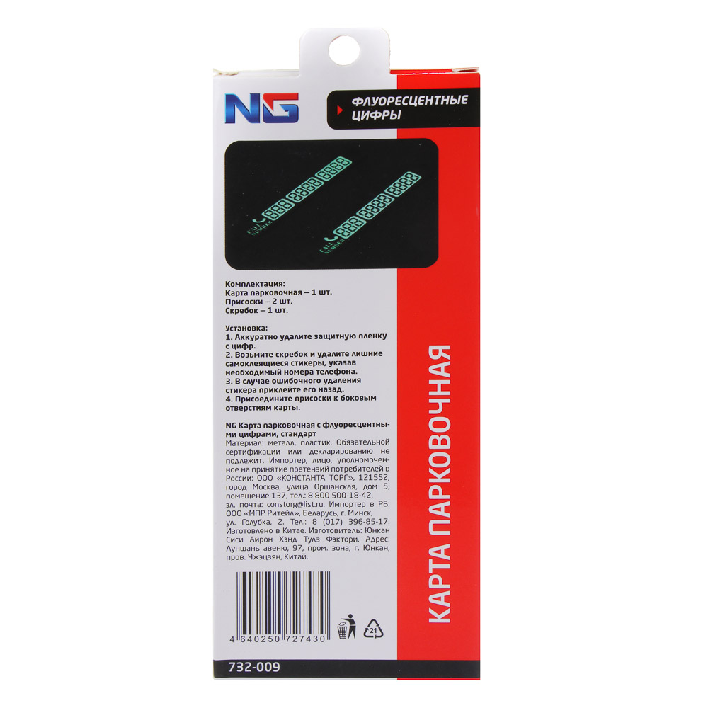 Парковочная карта с флуоресцентными цифрами NG, стандарт – это удобный аксессуар в металлическом корпусе, который пригодится для работы в такси. Надежно фиксируется при помощи присосок. Флуоресцентные цифры отлично просматриваются в темное время суток, поэтому номер вашего телефона будет заметен издалека. Комплект также включает скребок для удаления самоклеящихся стикеров.