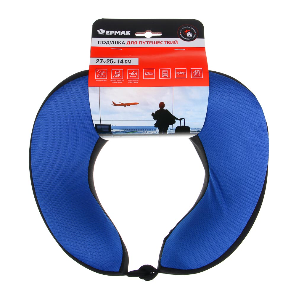 ЕРМАК Подушка для путешествий, u-образная, черно-синяя 27х25х14 см
