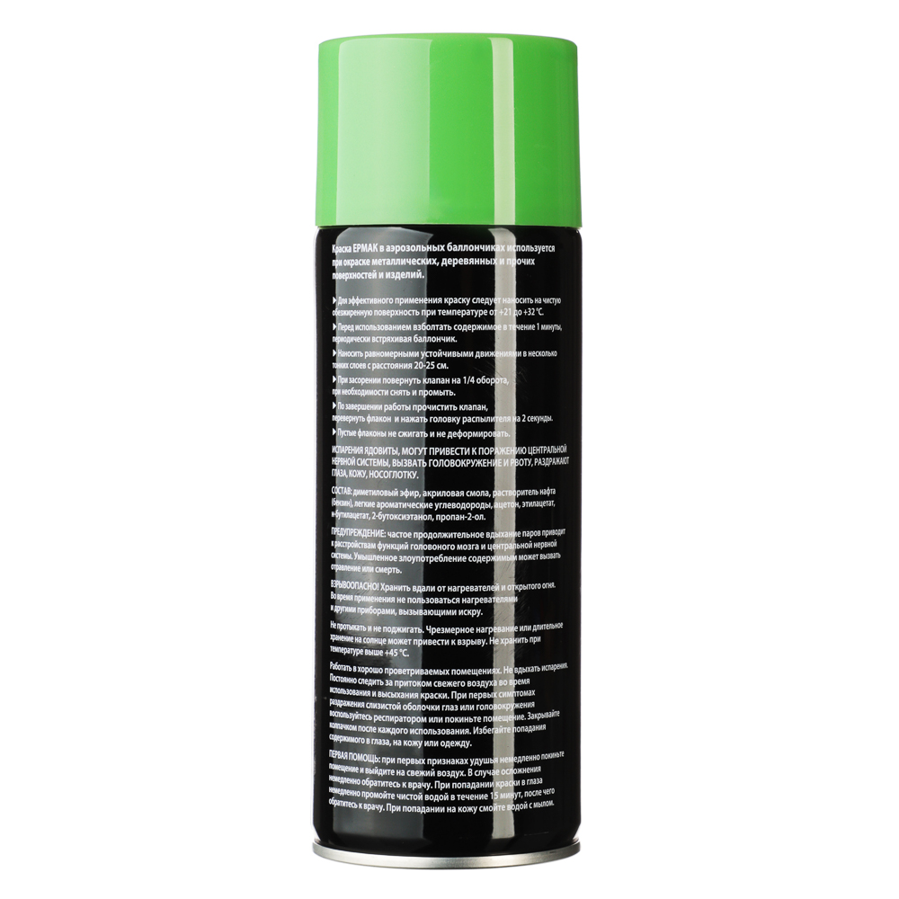 Аэрозольная краска «Ермак» — это высококачественная акриловая краска в удобном формате объёмом 400 мл. Она предназначена для окрашивания самых разных поверхностей и обеспечивает яркий и насыщенный зелёный цвет. Краска легко наносится, быстро сохнет и создаёт прочное глянцевое покрытие. Она идеально подойдёт для использования в быту, хобби и творчестве. Благодаря компактному размеру и форме аэрозоля, краску удобно хранить и использовать. Она станет незаменимым помощником в ремонте, декорировании и создании уникальных проектов.