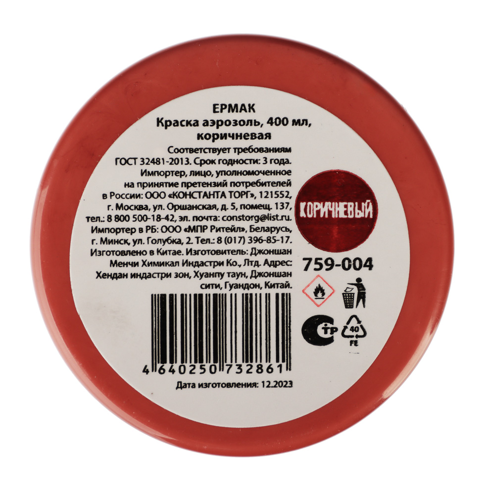 Коричневая краска-аэрозоль ЕРМАК — это высококачественная краска для окрашивания различных поверхностей, включая кузова автомобилей, металлические поверхности, а также мебель, изделия из пластика, деревянные поверхности и цемент. Краска обладает высокой укрывистостью и обеспечивает стойкое покрытие. Она легко наносится и быстро сохнет, что позволяет быстро и эффективно обновить внешний вид вашего автомобиля или других предметов. Коричневый цвет краски ЕРМАК придаст вашему автомобилю, мебели или другим предметам благородный и естественный оттенок. Он будет отлично смотреться как на тёмных, так и на светлых поверхностях. Краска поставляется в удобном аэрозольном баллоне объёмом 400 мл. Это позволяет легко наносить краску даже в труднодоступных местах.