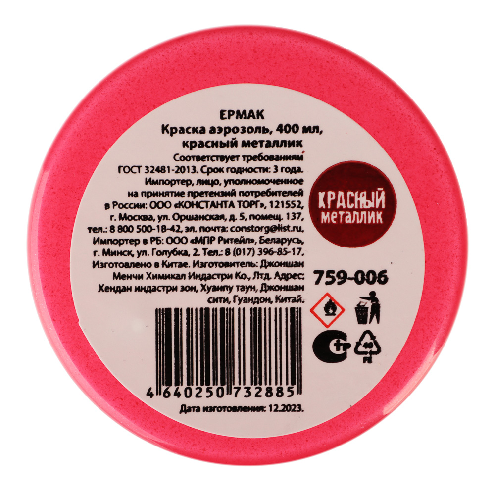 Добавьте изысканный металлический блеск вашим проектам с краской-аэрозолем ЕРМАК в цвете "красный металлик". Эта высококачественная краска предназначена для достижения профессиональных результатов с минимальными усилиями.Преимущества продукта:Аэрозольный формат позволяет легко наносить краску, обеспечивая точное и равномерное распыление без потеков и разводов.Краска высыхает всего за несколько минут, что сокращает время ожидания и позволяет быстро завершить проект.Идеально подходит для различных поверхностей, включая металл, дерево, пластик и керамику. Отлично подходит для ремонта, декорирования и креативных проектов.Создаёт стойкое покрытие, устойчивое к истиранию, выцветанию и воздействию погодных условий, что делает её идеальной для использования как внутри, так и снаружи помещений.Объем 400 мл позволяет покрыть значительную площадь, делая краску экономически выгодным решением для больших и малых проектов.