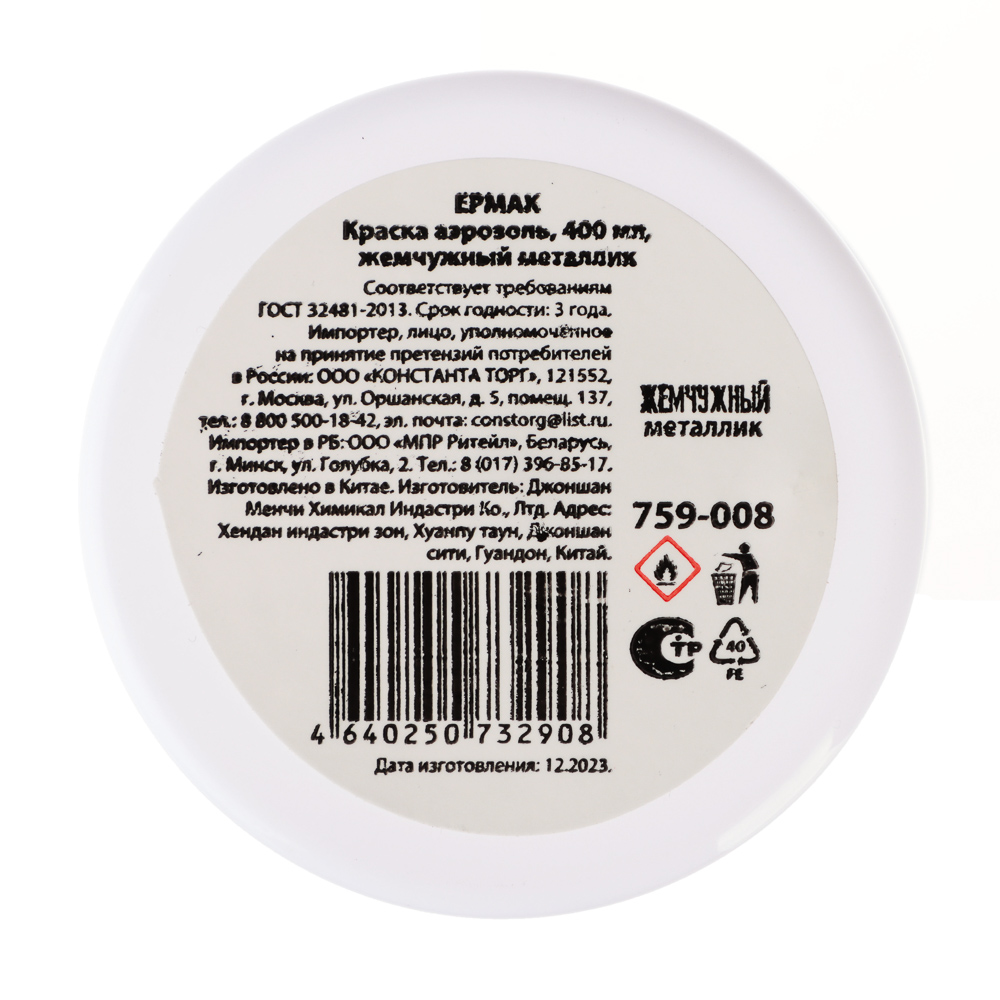 Добавьте изысканный металлический блеск вашим проектам с краской-аэрозолем ЕРМАК в цвете "жемчужный металлик". Эта высококачественная краска предназначена для достижения профессиональных результатов с минимальными усилиями.Преимущества продукта:Аэрозольный формат позволяет легко наносить краску, обеспечивая точное и равномерное распыление без потеков и разводов.Краска высыхает всего за несколько минут, что сокращает время ожидания и позволяет быстро завершить проект.Идеально подходит для различных поверхностей, включая металл, дерево, пластик и керамику. Отлично подходит для ремонта, декорирования и креативных проектов.Создаёт стойкое покрытие, устойчивое к истиранию, выцветанию и воздействию погодных условий, что делает её идеальной для использования как внутри, так и снаружи помещений.Объем 400 мл позволяет покрыть значительную площадь, делая краску экономически выгодным решением для больших и малых проектов.