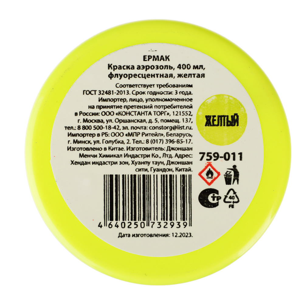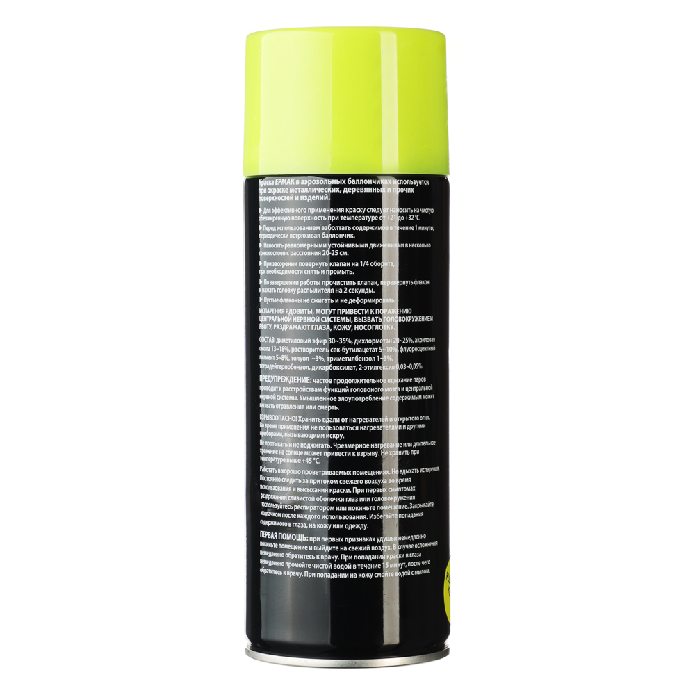 Флуоресцентная жёлтая краска-аэрозоль ЕРМАК, 400 мл — это отличный выбор для тех, кто хочет сделать свой проект ярким и заметным. Краска обладает высокой степенью яркости и насыщенности цвета, который будет виден даже при слабом освещении.Благодаря флуоресцентному эффекту, краска начинает светиться под воздействием ультрафиолетовых лучей, что делает её незаменимой для создания ярких и запоминающихся дизайнов.Краска легко наносится на различные поверхности, такие как металл, дерево, пластик, стекло и другие. Она быстро высыхает и образует прочное покрытие, устойчивое к воздействию влаги и механическим повреждениям.Жёлтая флуоресцентная краска-аэрозоль ЕРМАК станет отличным выбором для художников, дизайнеров, любителей граффити и всех, кто хочет добавить яркие краски в свою жизнь.