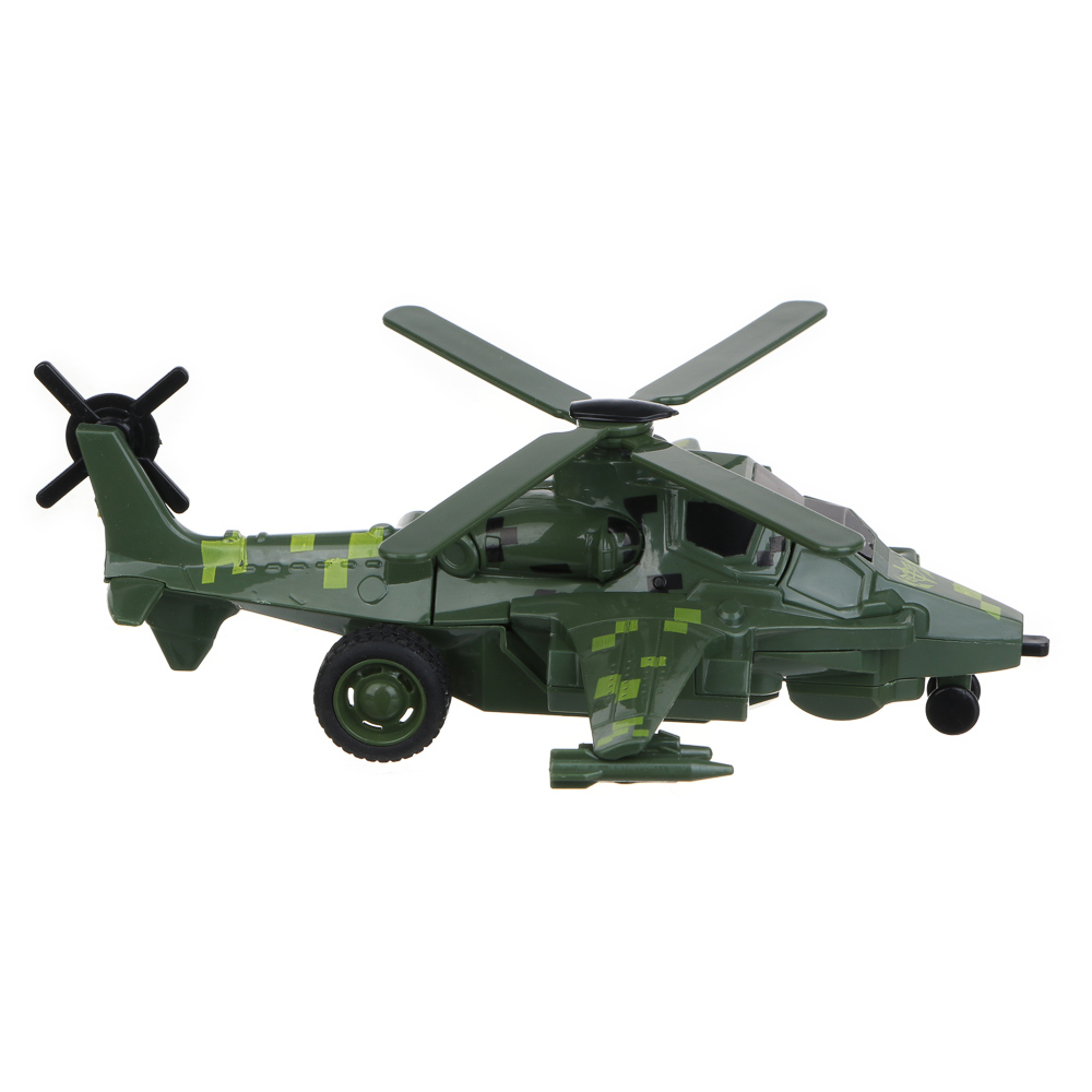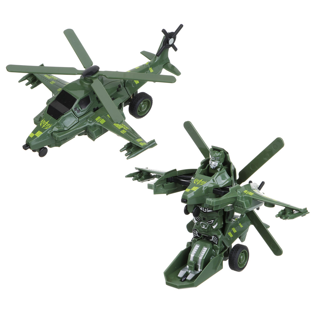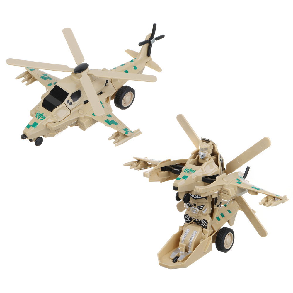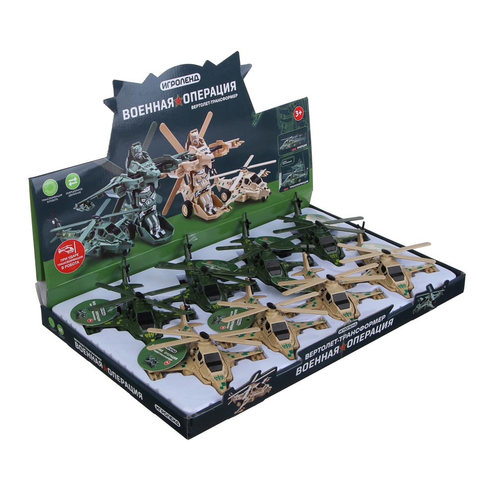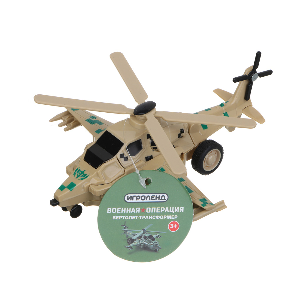 Вертолет-трансформер от ИГРОЛЕНД 2 в 1 – это инерционная игрушка из ABS-пластика в виде военного вертолета. Игрушка станет прекрасным подарком для мальчика, сможет удивить и порадовать ребенка и непременно станет участником увлекательных игровых сюжетов. При ударе о землю вертолет превращается в робота, вызывая удивление и восторг у ребенка. Корпус из прочного пластика устойчив к механическим воздействиям. Игрушка не разбивается и не трескается. Доступно 2 дизайна.