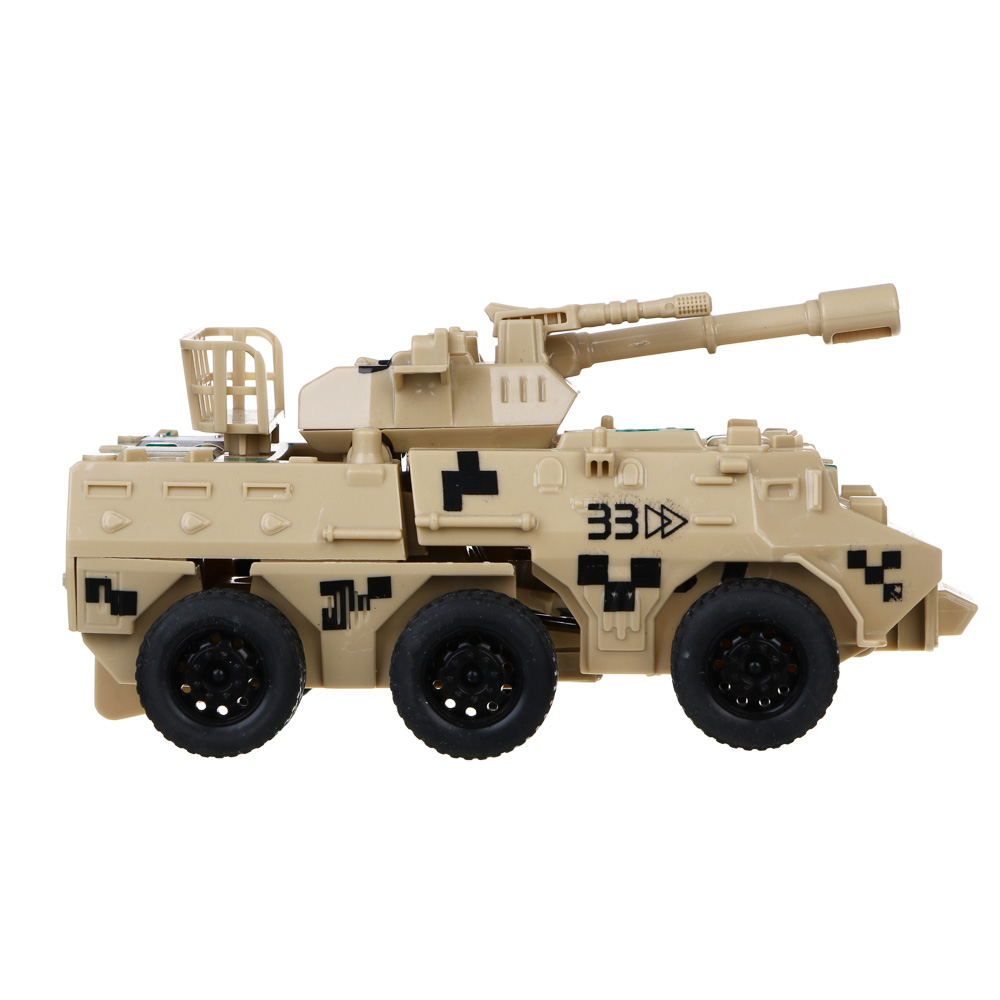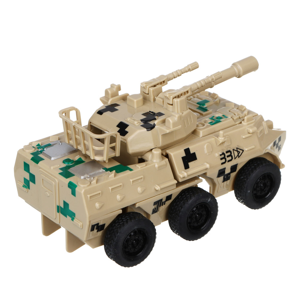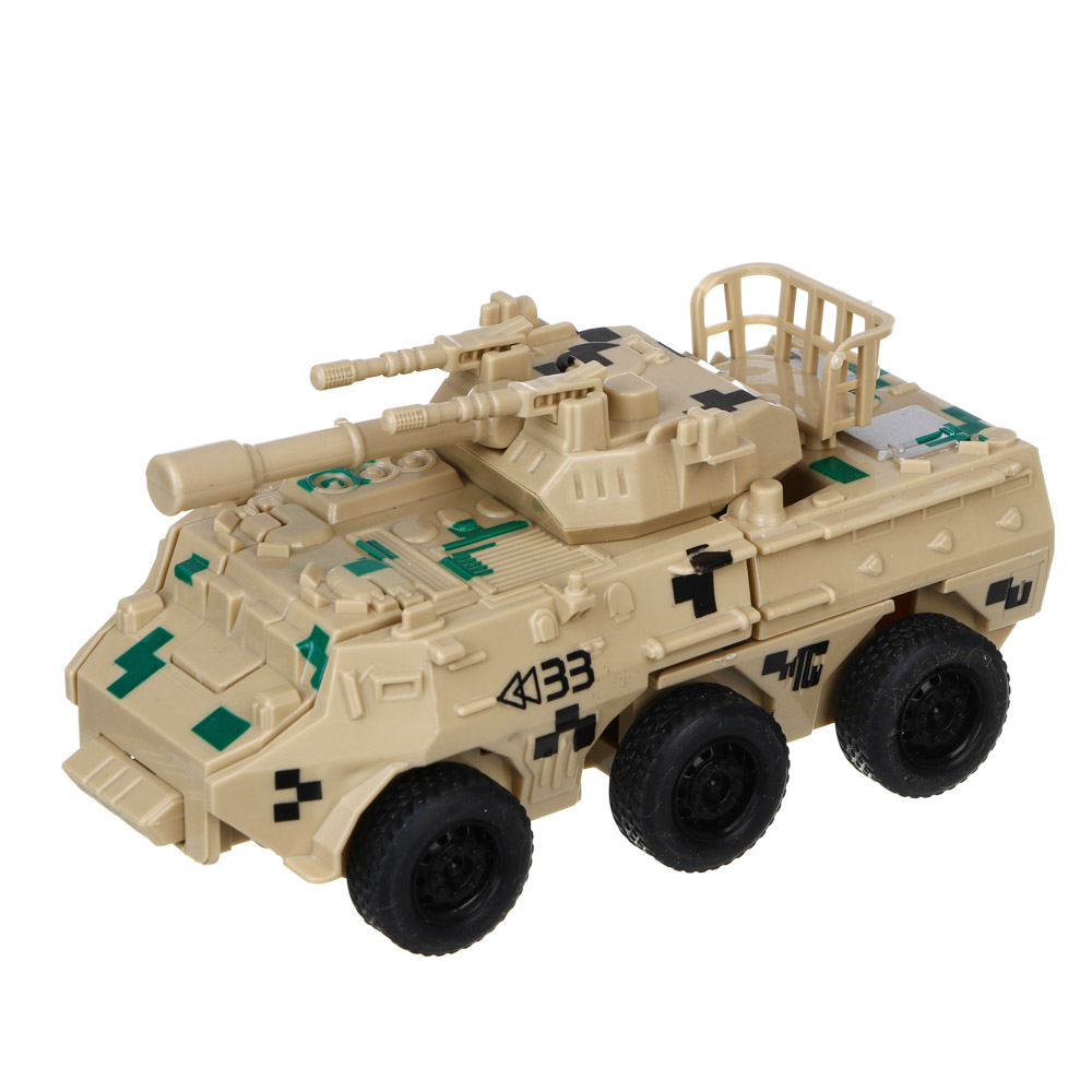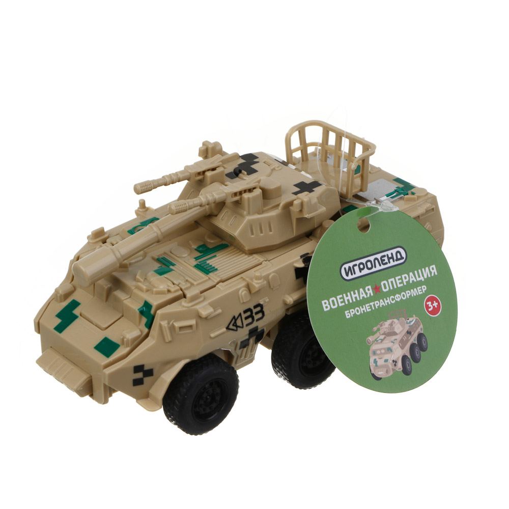 Бронетрансформер "Военная операция" 2 в 1 от ИГРОЛЕНД – это прекрасный подарок для мальчика. Игрушка из прочного ABS-пластика имеет высокую степень детализации, подвижные элементы и качественные колеса. Трансформируется буквально в одно движение и превращается в робота на колесах. Ребенок будет с удовольствием играть и придумывать разнообразные фантастические истории и сюжеты с участием бронетрансформера. Размер игрушки 14х7х7,5 см. Доступно 2 дизайна.