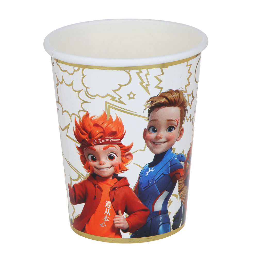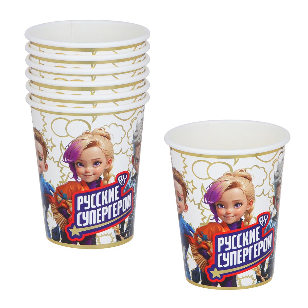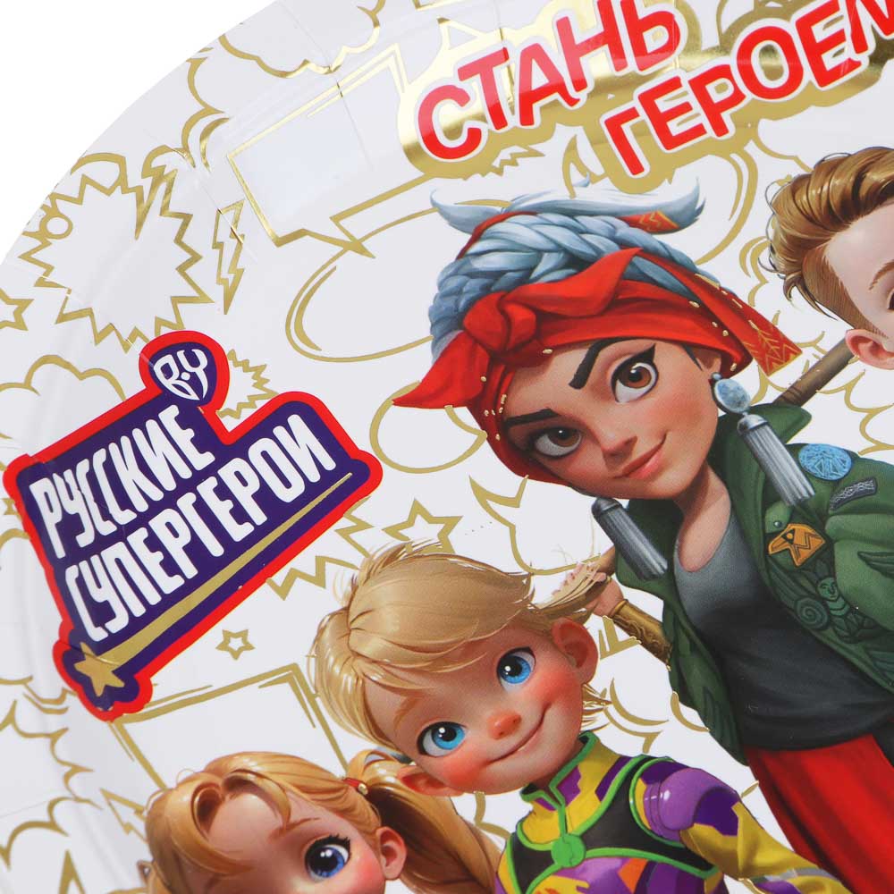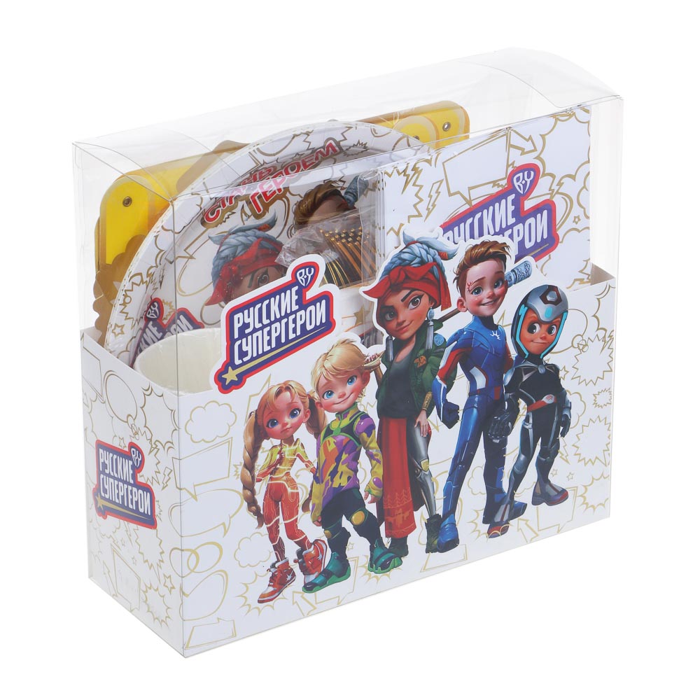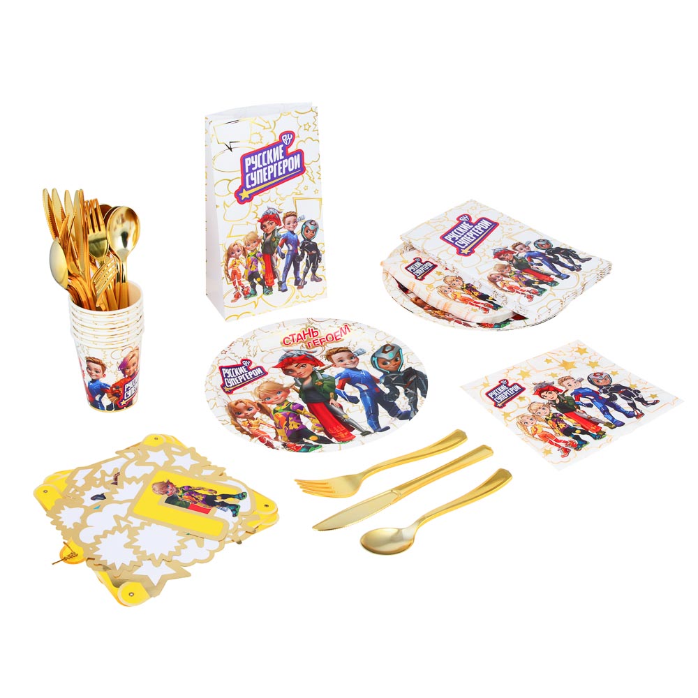 Организуйте незабываемую вечеринку с праздничным набором "Поздравляем" от BY, оформленным в тематике Русские Супергерои. Набор включает все необходимые элементы для яркого и весёлого праздника: Тарелки (23 см) - 6 штук, салфетки (33 см) - 12 штук, стаканы (250 мл) - 6 штук, вилки - 6 штук, ножи - 6 штук, ложки - 6 штук, пакетики - 6 штук, растяжка - 1 штука. Каждый элемент набора выполнен с яркими и красочными изображениями любимых супергероев, что создаст праздничное настроение и добавит волшебства в ваше торжество. Золотые пластиковые столовые приборы придают мероприятию дополнительный блеск и изысканность. Подготовьтесь к празднику легко и быстро с набором "Поздравляем"! Отличное решение для празднования дня рождения дома или на выездном мероприятии. Материал: бумага, пластик.