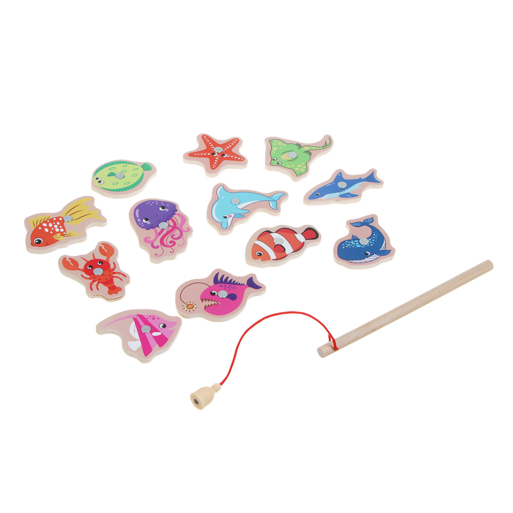 Откройте для вашего малыша волшебный мир игры с развивающей игрушкой "Рыбалка магнитная"! Увлекательная и красочная игрушка не только подарит много радости, но и станет незаменимым помощником в развитии мелкой моторики и координации движений. Игрушка состоит из 12 ярких деревянных фигурок морских обитателей, каждая из которых снабжена маленьким магнитиком. В комплект входит удобная удочка с магнитным наконечником, позволяющая легко ловить веселых рыбок, крабов, медуз и других подводных друзей.Особенности:Материал: высококачественное дерево, окрашенное безопасными для здоровья детей красками.Количество фигурок: 12 красочных морских обитателей, каждая со своим уникальным дизайном.Безопасность: все элементы тщательно обработаны и не имеют острых углов, что делает игру безопасной даже для самых маленьких.С магнитной рыбалкой ваш малыш научится быть внимательным и усидчивым. Игра станет отличным подарком и обеспечит много часов весёлого и полезного досуга.