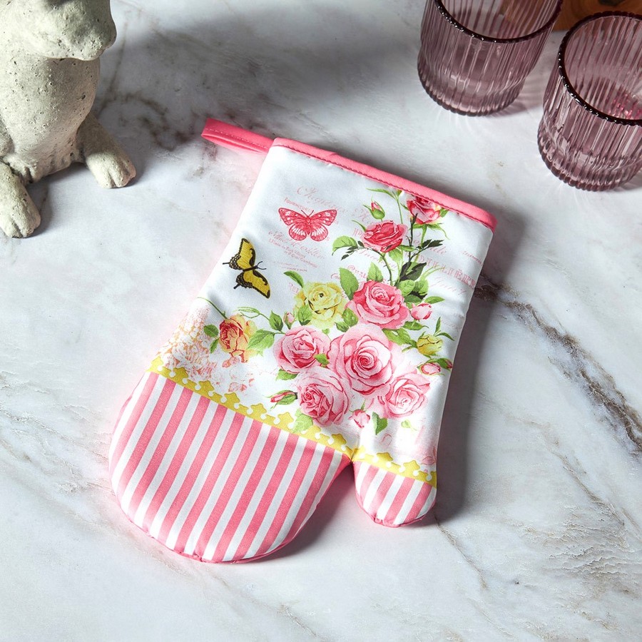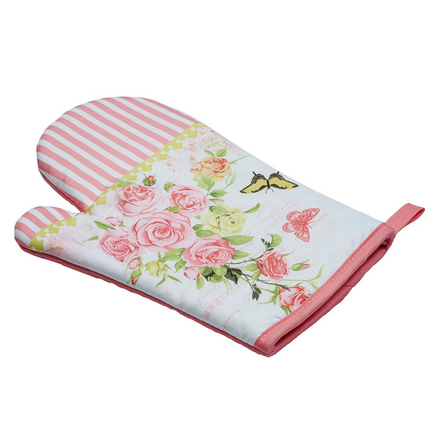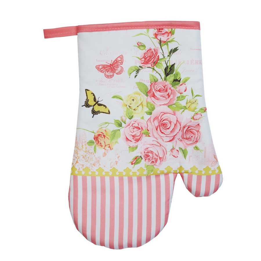 Рукавица-прихватка "Чайная роза" защитит ладонь при соприкосновении с горячей ручкой или поверхностью кастрюли, чайника, противня, сковороды. Изготовлена она из качественного полиэстера. Рукавицу можно стирать в машинке, она прочна и прослужит долго. Форма прихватки обеспечивает анатомическую посадку на кисть, что позволяет с удобством ухватить ручку посуды, выдвинуть из духовки противень. Всё продумано: есть даже и петелька, за которую вы сможете повесить свою помощницу неподалёку от плиты. В ожидании очередного задания эта рукавичка будет доставлять вам визуальное удовольствие своей нежной палитрой и флористическим рисунком.