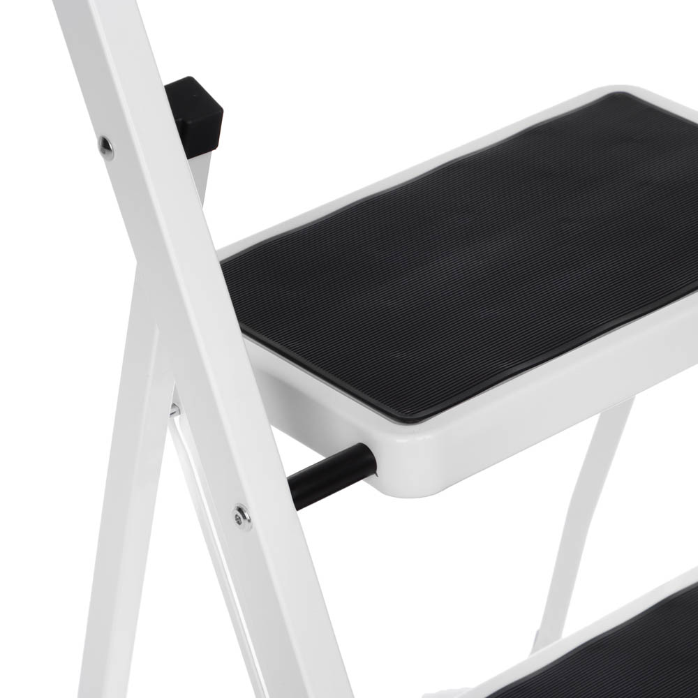 Подойдёт для использования как внутри так и снаружи помещения: для дома, для кухни, для прихожей, и т.д. Широкие ступени с пластиковыми накладками позволяют комфортно ее использовать. Боковины выполнены из стали, с порошковой покраской. В сложенном состоянии модель занимает мало места, что удобно при хранении. Устойчивость обеспечивается противоскользящими заглушками. Максимальная нагрузка - 150 кг.