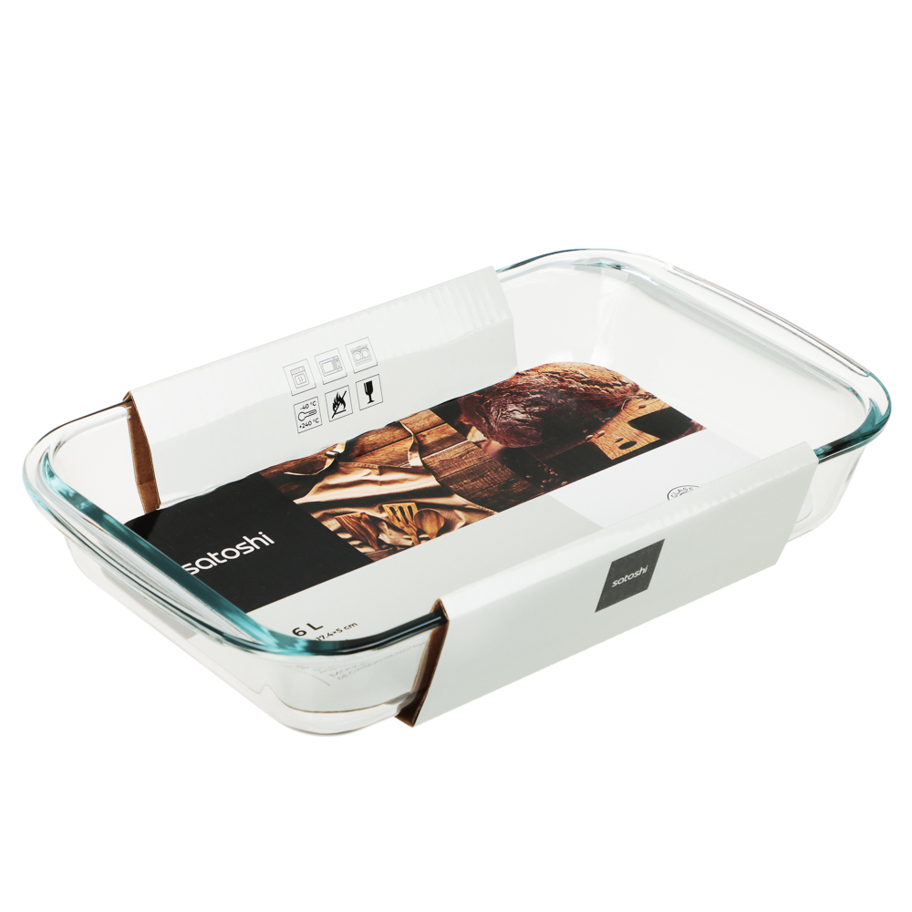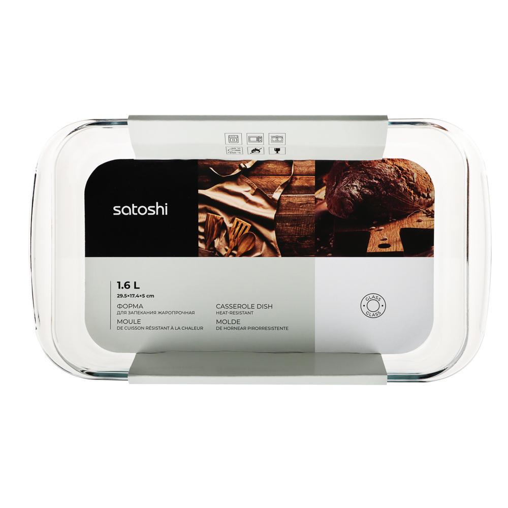 Форма для запекания жаропрочная прямоугольная, с ручками SATOSHI из стекла размером 29,5х17,4х5 см и объемом 1,6 л – универсальное решение для приготовления повседневных и праздничных блюд в духовке. Глубокая форма подходит для запекания мяса, овощей, рыбы, приготовления омлетов, запеканок и других блюд в соусе и в собственном соку. Толстое стекло не трескается, не впитывает запахи и не царапается. Обеспечивает равномерный нагрев, не допуская пригорание, поэтому блюда получаются полезными и вкусными.
