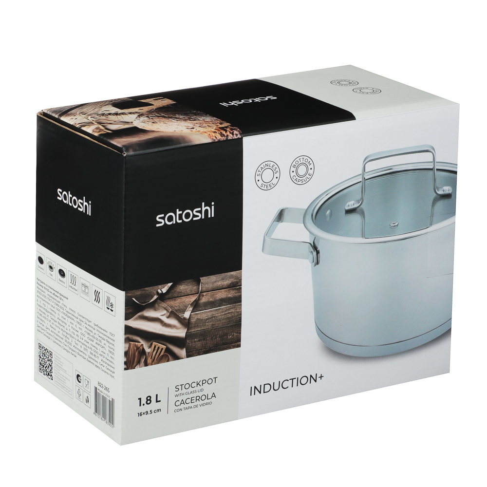 Хотите обновить посуду для приготовления еды? Кастрюля Satoshi из коллекции Шато объемом 1,8 л со стеклянной крышкой сочетает в себе современные технологии и стильный дизайн. Это универсальная посуда из нержавеющей стали, созданная по последним технологиям. Посуда из нержавеющей стали не окисляется, материал не впитывает и не выделяет запахи, что положительно влияет на вкус пищи. Кастрюля Satoshi оснащена капсульным дном. Вода закипает быстрее. Ингредиенты не прилипают, не подгорают. Пища готовится равномерно и качественно. Кастрюля оснащена ручками, которые всегда остаются холодными. Подходит для всех типов плит, включая индукцию.Размер 16х9,5 см.