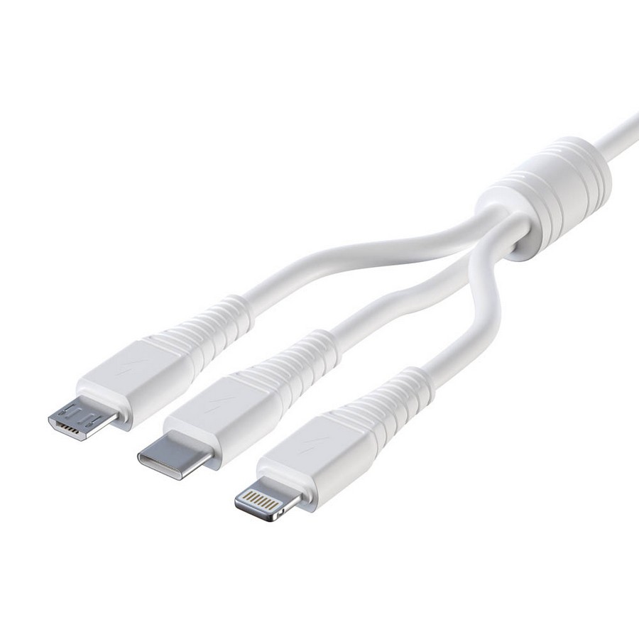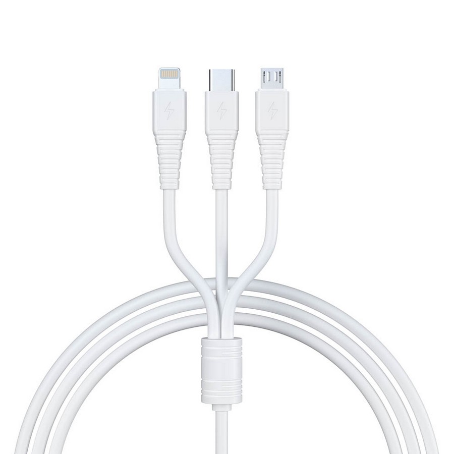 Купите товар «931-233 Кабель для зарядки 3 в 1 Классика iP/Micro USB/Type-C, 1м, 3A, белый» по оптовой цене с доставкой или самовывозом. В Екатеринбурге и других городах.