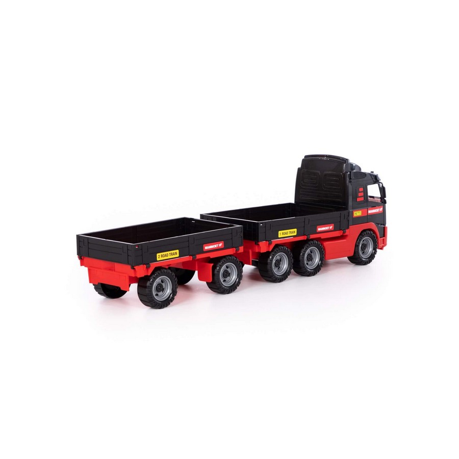 Размер игрушки в собранном виде 775х190х250 мм Крупнейшая в СНГ фабрика по производству игрушек «Полесье» совместно с компанией «МАММОЕТ», специализирующейся на тяжёлых подъёмных работах и транспортировке тяжёлых грузов по воде и суше, наладила выпуск лицензионной серии эксклюзивных игрушек. Дизайн игрушек разработан в соответствии с фирменными цветами компании «МАММОЕТ», что позволяет игрушке выглядеть более реалистично. Автомобиль бортовой с прицепом от компании «Полесье» создан по подобию оригинального большегруза. Игрушка выполнена из качественного и надежного пластика. Автомобиль оснащён бортами, которые снимаются, таким образом, можно перевозить более габаритные грузы. Играть автомобилем удобно как в помещении, так и на свежем воздухе.