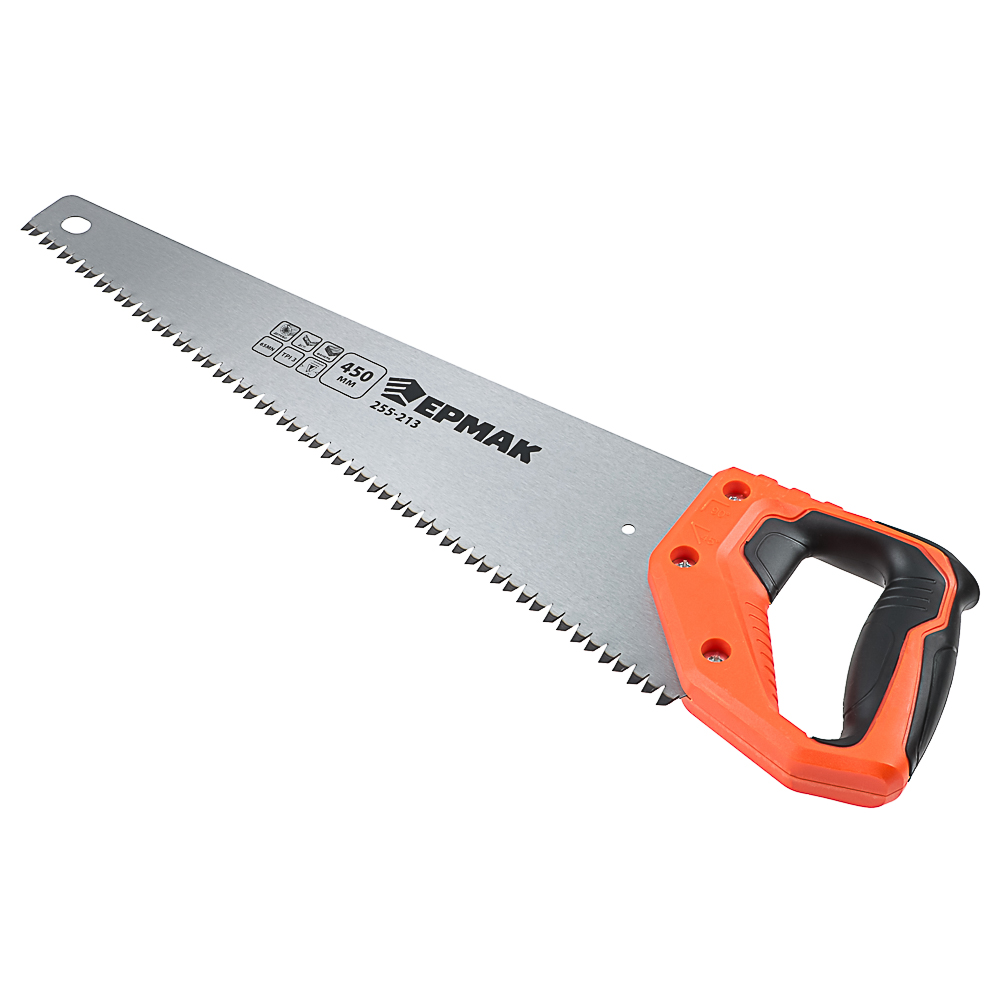 Ножовка по дереву ЕРМАК MAXI 3D 450 мм – необходимый инструмент для строительства, ремонта, столярных и слесарных работ. Ножовка имеет легкий вес и изготовлена из высококачественной стали. Зубья треугольной формы эффективно работают по сухой древесине. Удобная ручка обеспечивает комфортный хват. Долговечный инструмент, устойчивый к износу.
