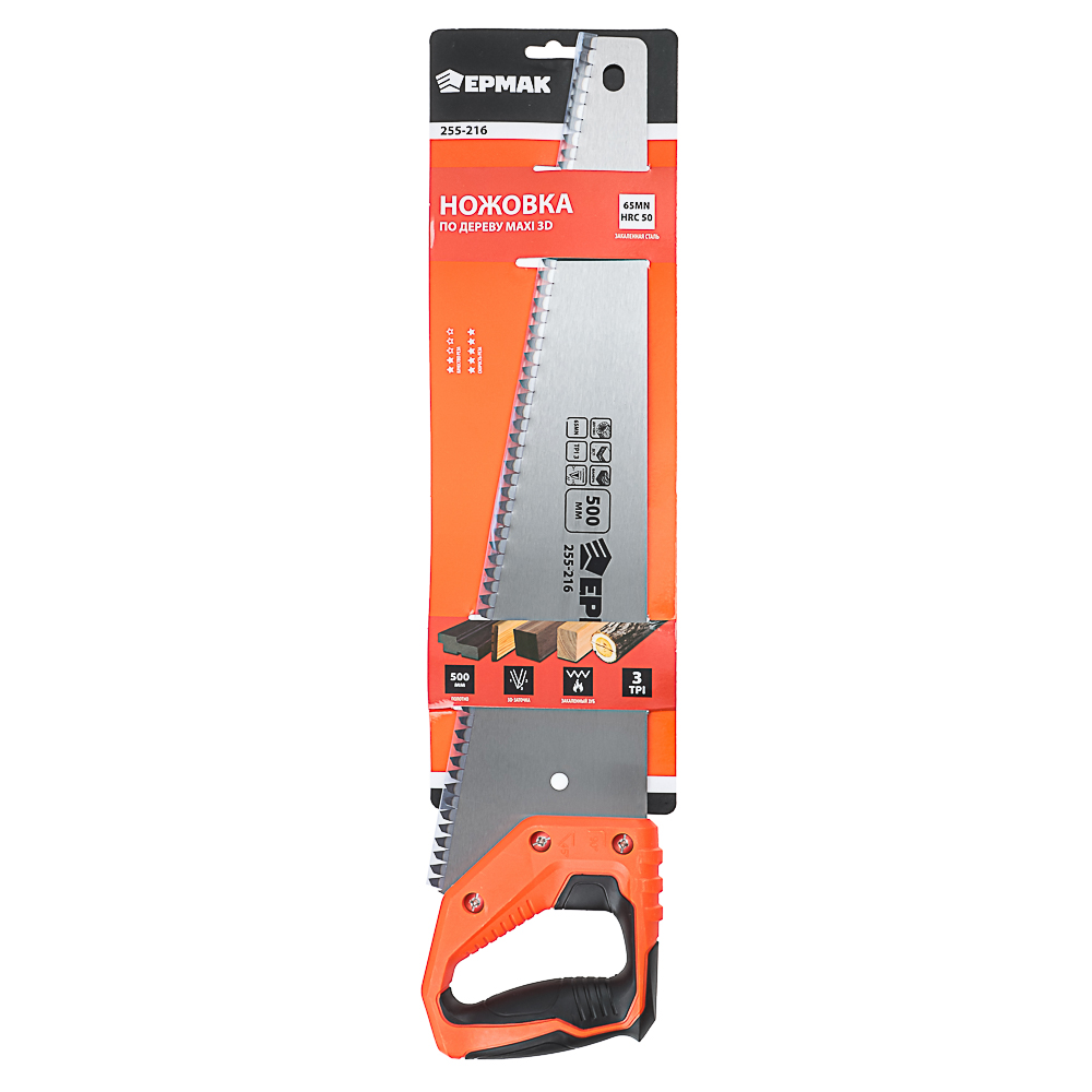 Ножовка по дереву ЕРМАК MAXI 3D 500 мм – необходимый инструмент для строительства, ремонта, столярных и слесарных работ. Ножовка имеет легкий вес и изготовлена из высококачественной стали. Зубья треугольной формы эффективно работают по сухой древесине. Удобная ручка обеспечивает комфортный хват. Долговечный инструмент, устойчивый к износу.