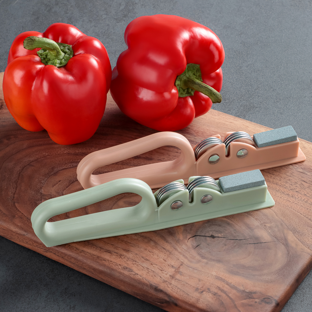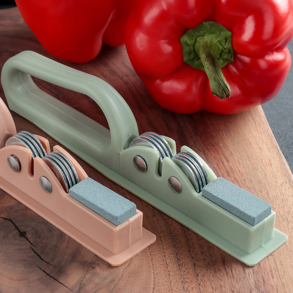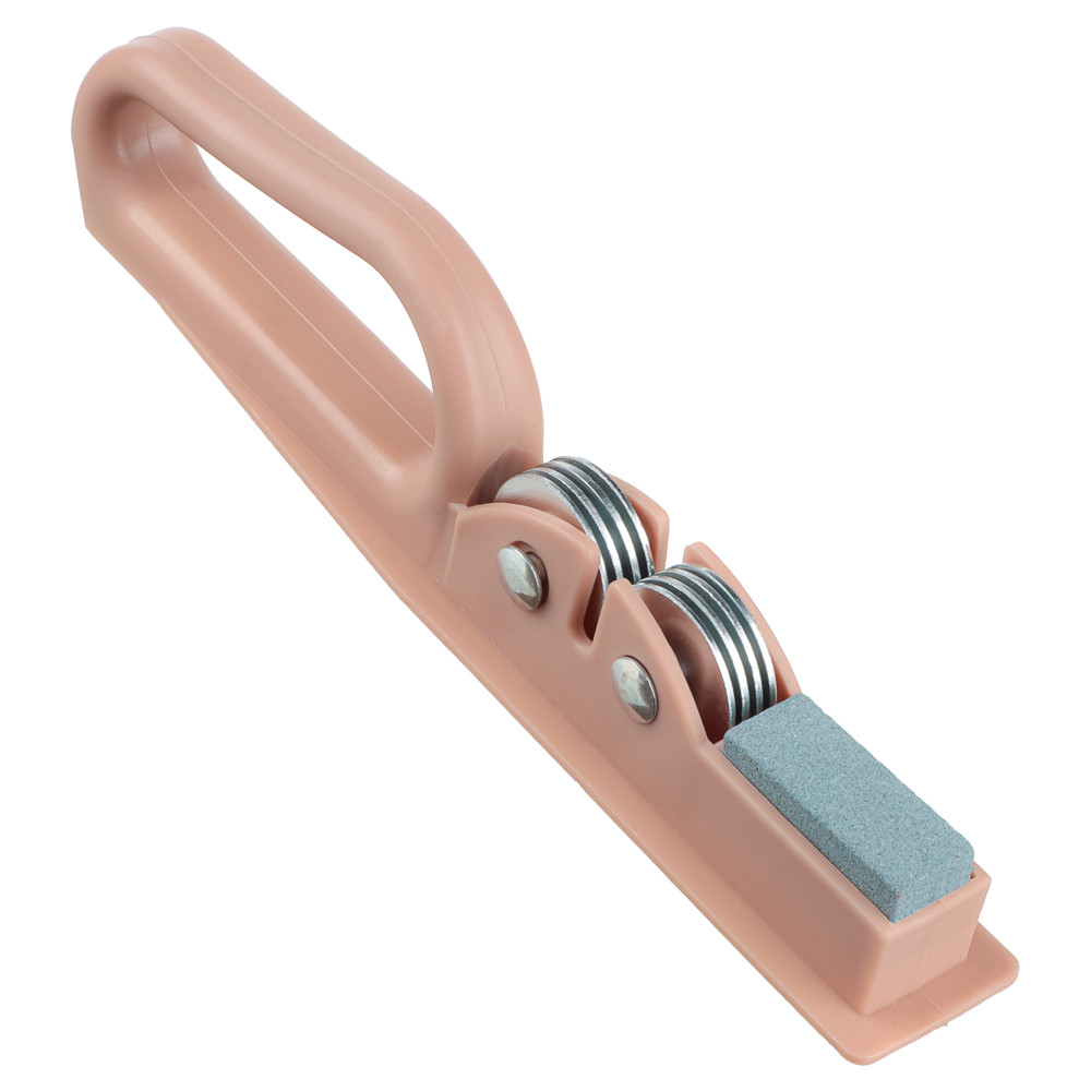 Механическая ножеточка роликовая, с точильным бруском предназначена для заточки стальных кухонных, овощных, поварских, туристических, охотничьих, рыбацких и других ножей, имеющих лезвие. Рабочая часть точилки выполнена из металлических дисков, расположенных в два ряда по 4 ролика в каждом. Лезвие ножа затачивается между роликами, в корпусе для правильного расположения лезвия предусмотрен специальный паз. Ручка обеспечивает удобный захват и контроль процесса заточки, а шлифовка камнем помогает достичь идеальной остроты лезвия. Удобная, компактная точилка для ножей станет вашим незаменимым помощником на кухне. Преимущества точилки: • Прочные высококачественные материалы - пластик и нержавеющая сталь; • Универсальность - подходит для большинства ножей; • Нет требует особого ухода; • Удобная и безопасная конструкция; • Сочетается с любым кухонным интерьером; • Доступная цена.