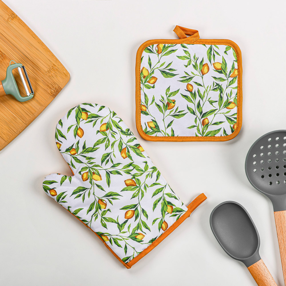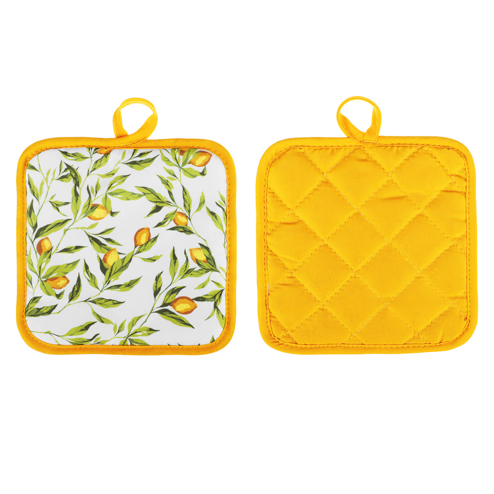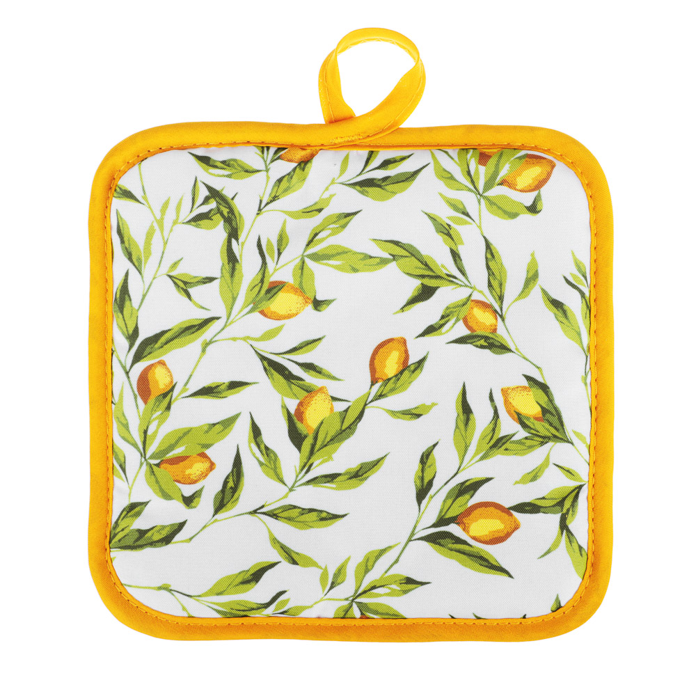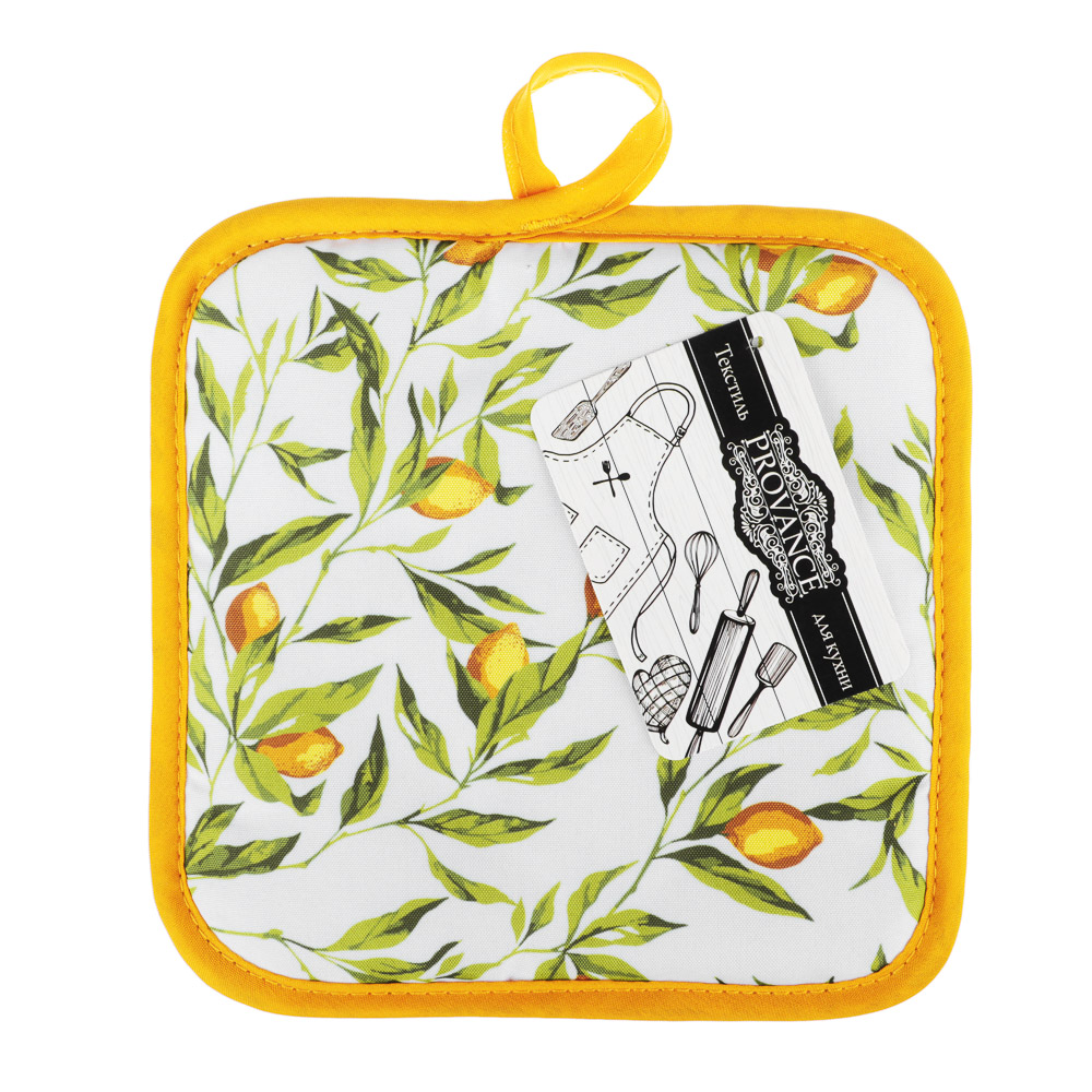 Прихватка PROVANCE Лимонный курд - незаменимый помощник на любой кухне. Изделие выполнено из прочного материала и оформлено красочным принтом. Прихватка мягкая, удобная и практичная. Она защитит ваши руки и предотвратит появление ожогов. Оригинальный дизайн позволит красиво дополнить интерьер кухни. С помощью текстильной петельки прихватку можно подвесить на крючок.