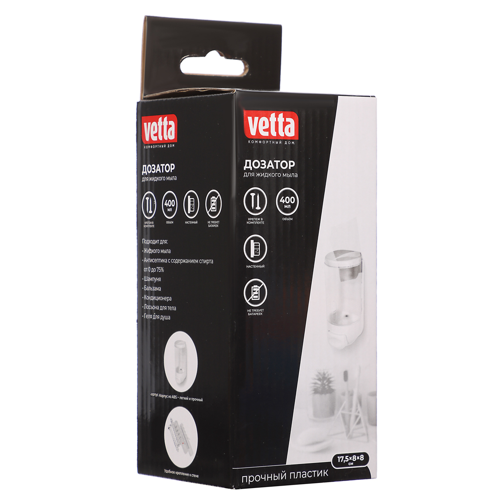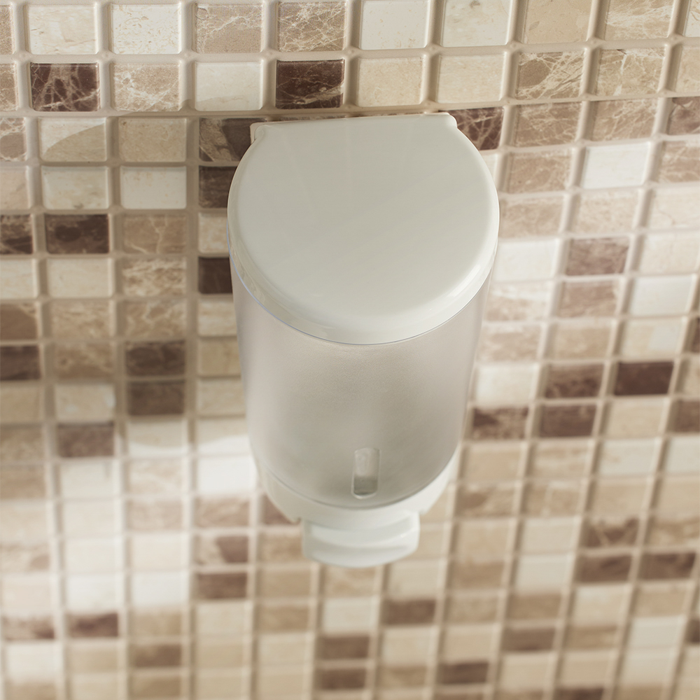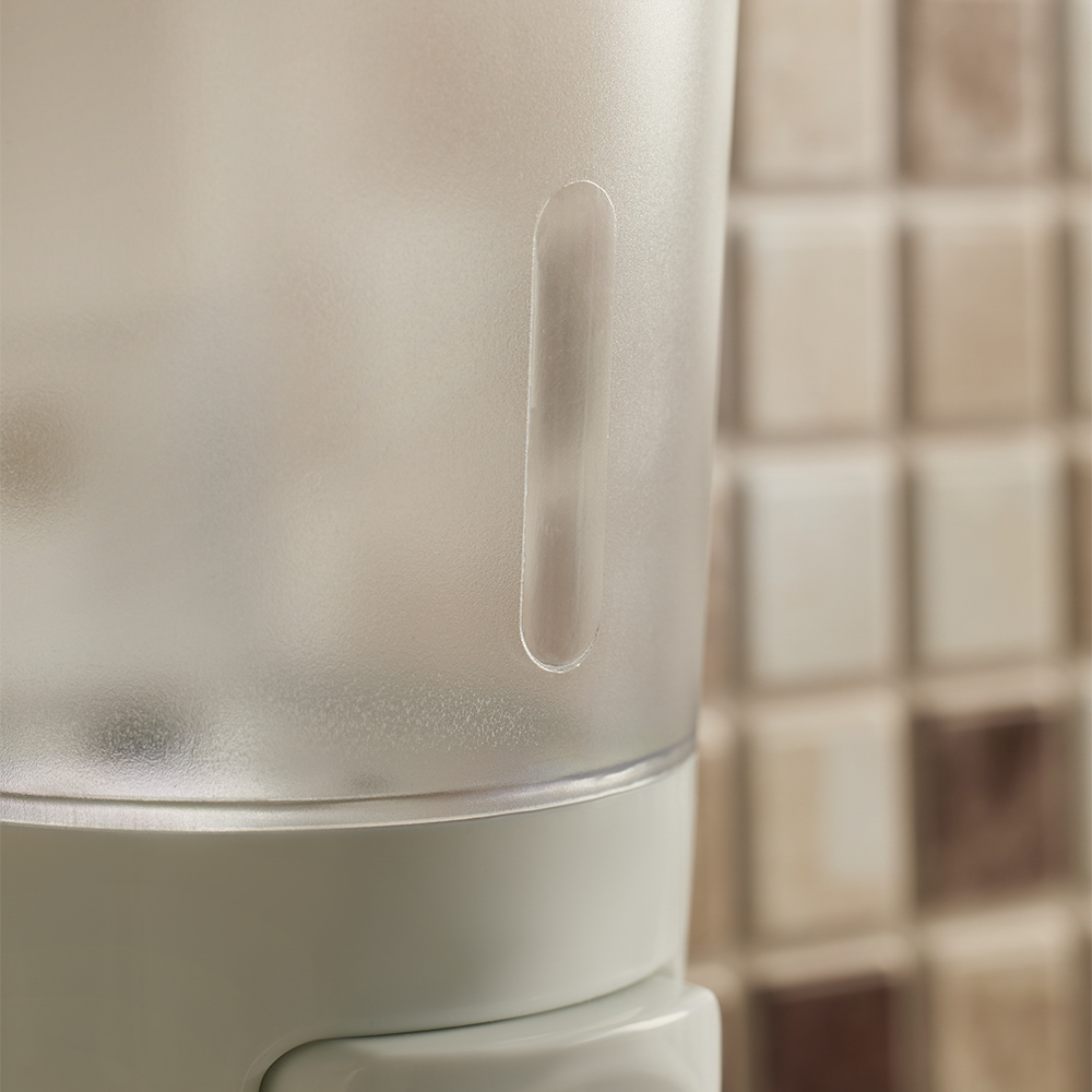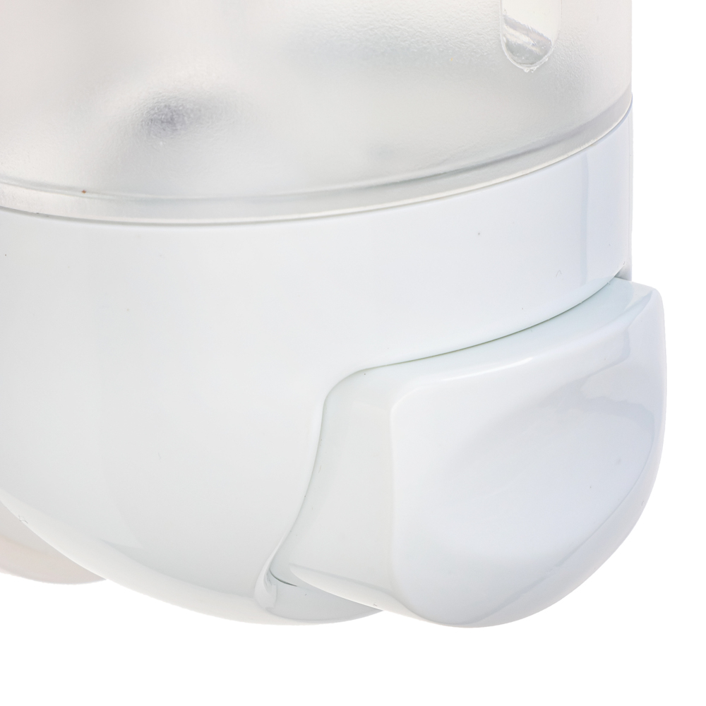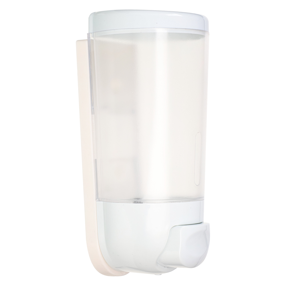 Настенный пластиковый дозатор для жидкого мыла объемом 400 мл предназначен для удобной подачи жидких моющих средств: мыла, геля для душа или шампуня. Полупрозрачный резервуар позволяет контролировать степень наполненности емкости. Мыло выдается путем нажатия на кнопку в нижней части корпуса. Дозатор плотно крепится к стене. Крепеж входит в комплектацию. Подходит как для дома, так и для мест общественного пользования.
