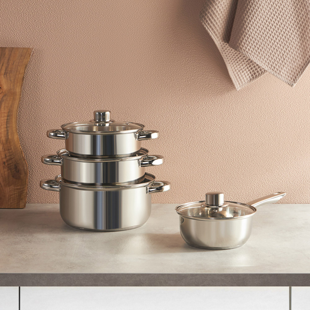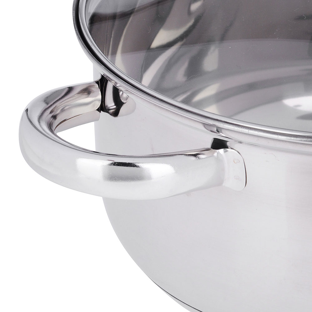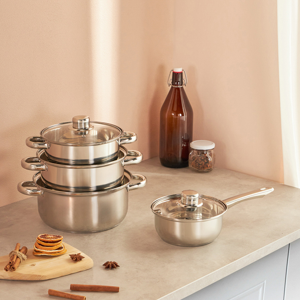 Все еще довольствуетесь приготовлением обедов в старых кастрюлях, где пища медленно варится и пригорает? Обратите внимание на линейку стильной посуды «Джерси». Это универсальная посуда из нержавеющей стали, созданная по последним технологиям. Кастрюли оснащены капсульным дном. Вода закипает быстрее. Ингредиенты не подгорают. Пища готовится равномерно и качественно. Подходит для длительного хранения в холодильнике и тушения блюд в духовке. Преимущества кастрюли из нержавеющей стали серии "Джерси":• многослойное капсульное дно — быстрее готовит, экономит энергию;• крышка из жаропрочного стекла со стальным ободом и отверстием для отвода пара;• объем 2,6 л, размер 20х10 см;• можно мыть в посудомоечной машине.