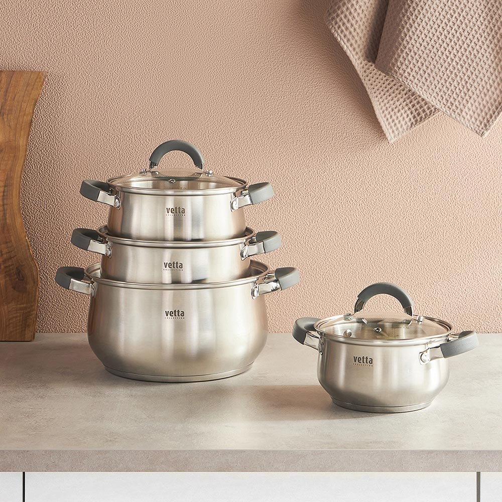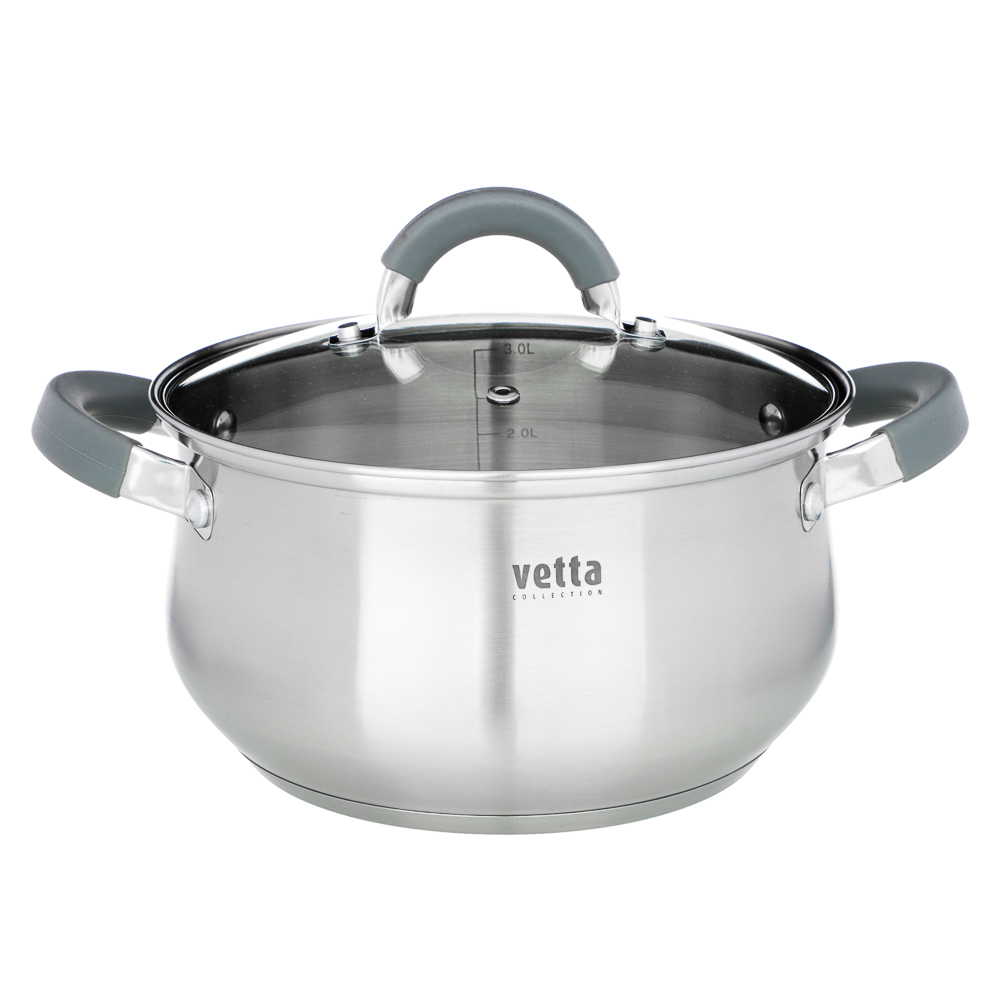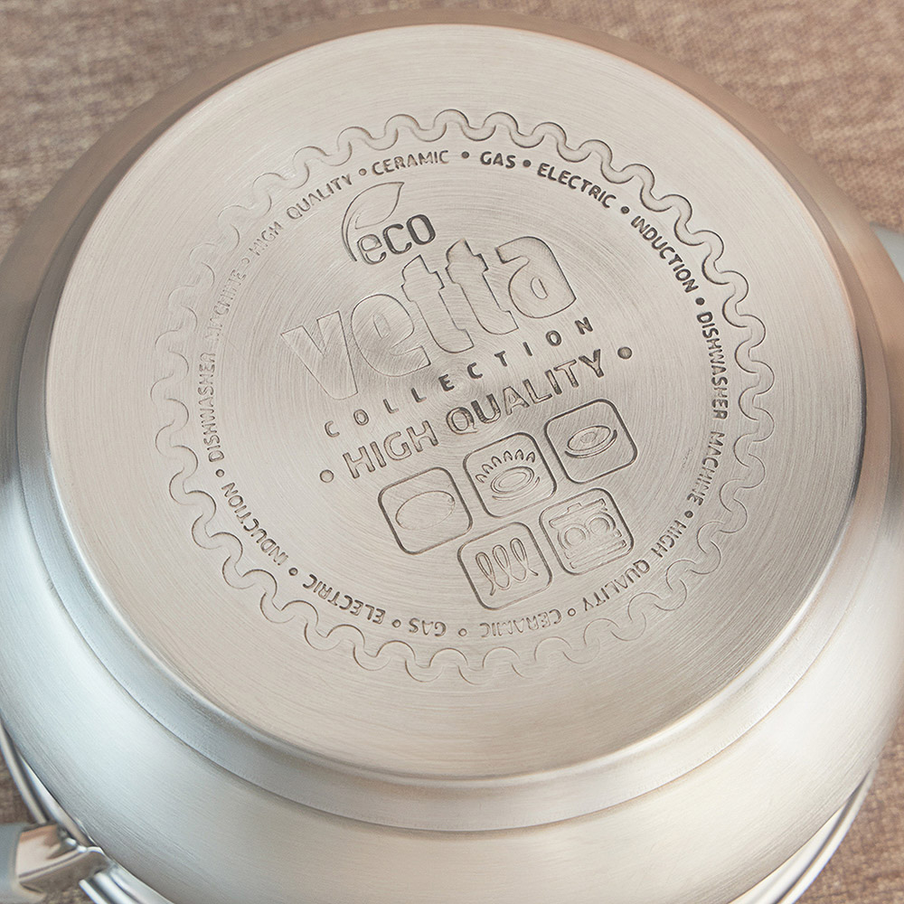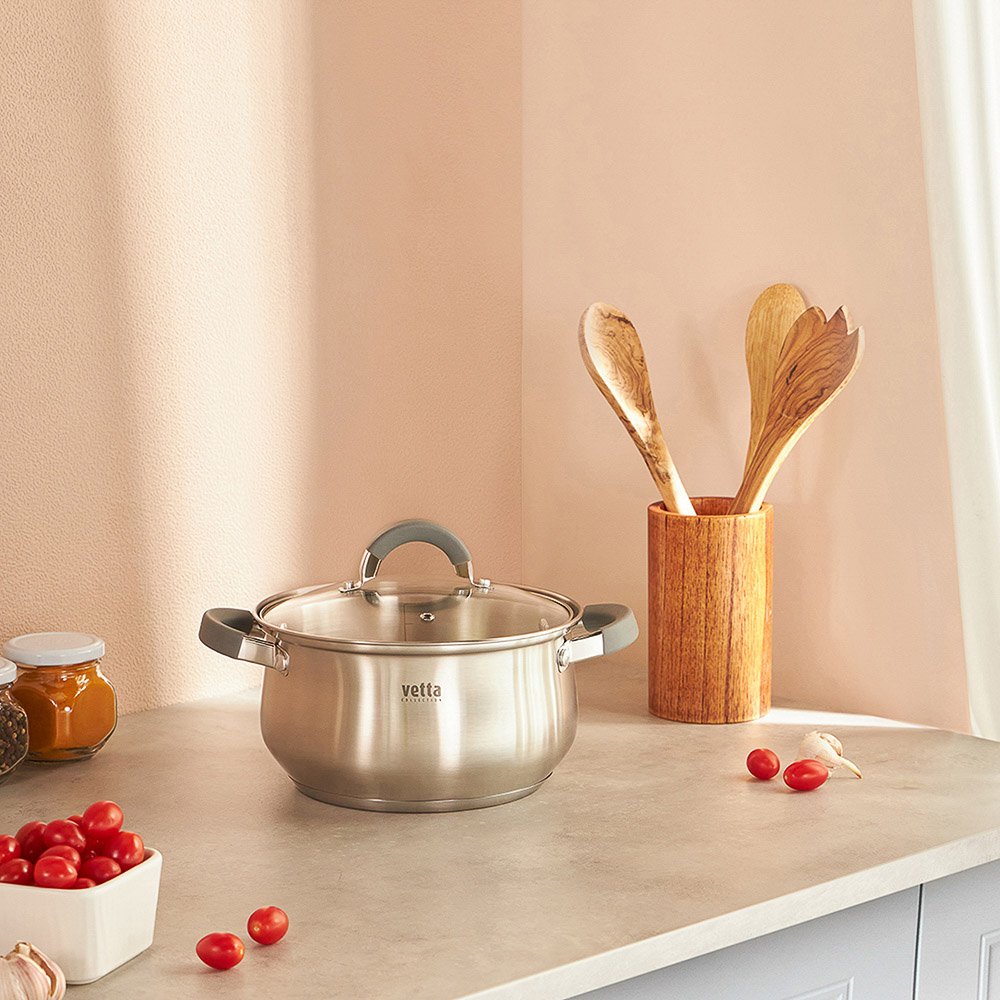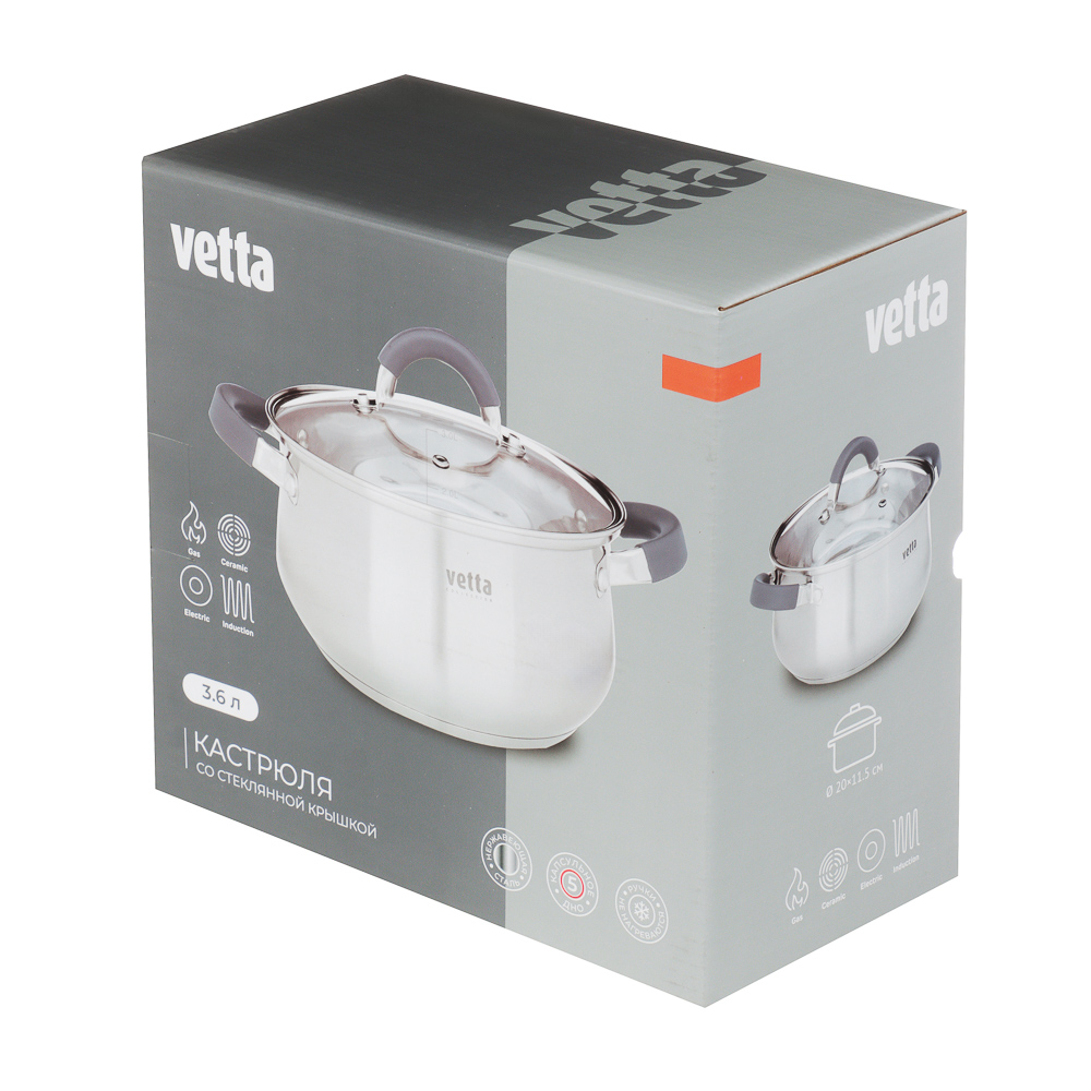 Идеальная помощница на кухне – кастрюля VETTA "Вена" объемом 3,6 л, диаметром 20 см и высотой 11,5 см станет незаменимой для приготовления любимых блюд. Кастрюля оснащена удобной стеклянной крышкой с пароотводом, позволяющей контролировать процесс готовки, не поднимая крышку. Индукционное капсульное дно обеспечивает быстрый и равномерный нагрев на любых типах плит, включая индукционные. Особое внимание заслуживают эргономичные ручки с силиконовыми накладками – они остаются холодными во время готовки и обеспечивают удобный захват. А внутренняя мерная шкала поможет точно отмерить нужное количество ингредиентов без лишних приборов. Кастрюлю можно мыть в посудомоечной машине. С посудой VETTA "Вена" ваши кулинарные шедевры будут получаться идеальными!