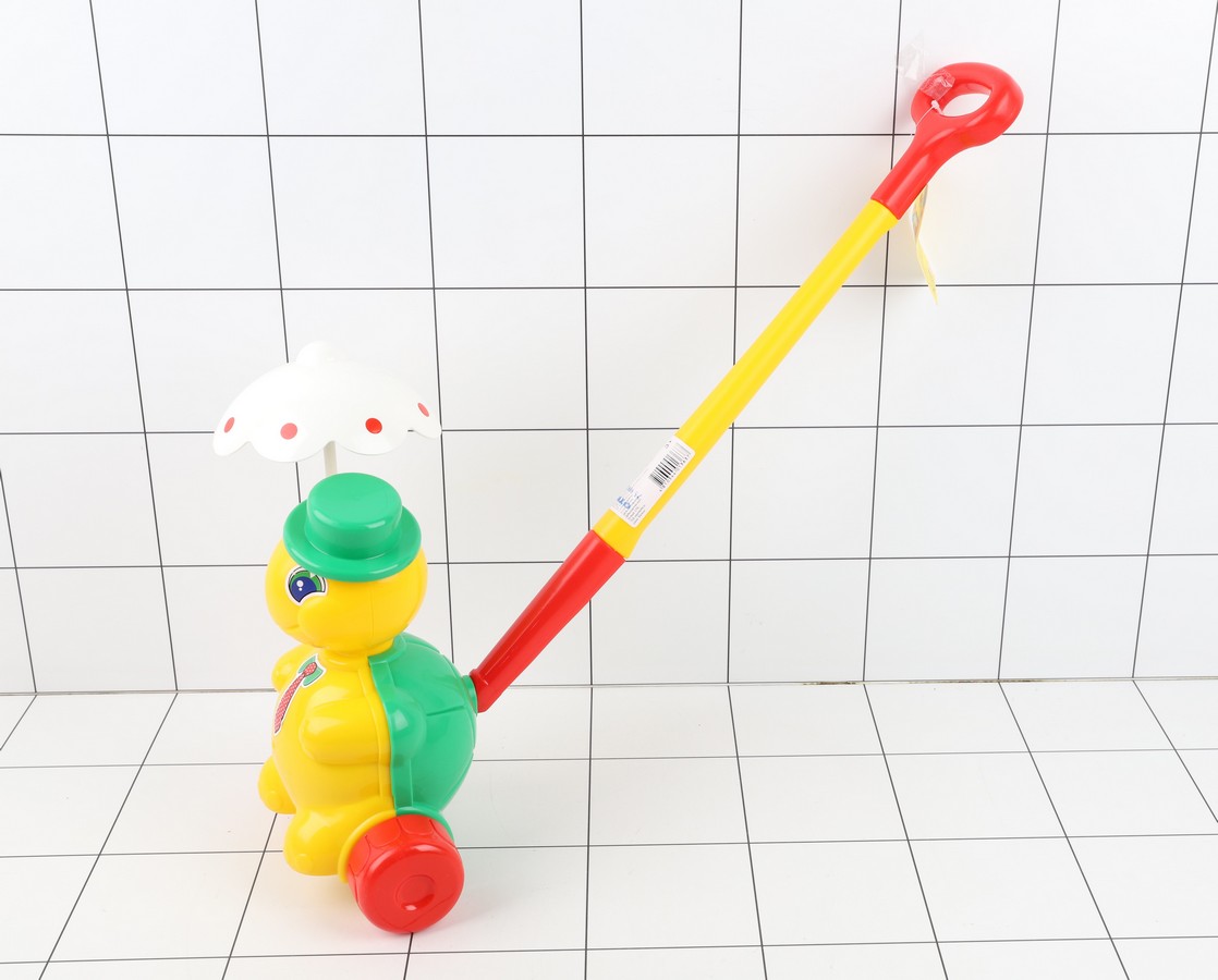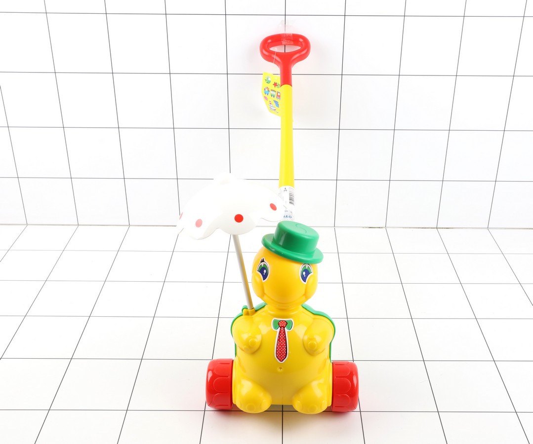 Каталка предназначена для толкания перед собой при ходьбе. Во время движения каталка трещит, а у черепашки вращается зонтик. Ходьба с каталкой развивает у малыша координацию движений, чувство равновесия.