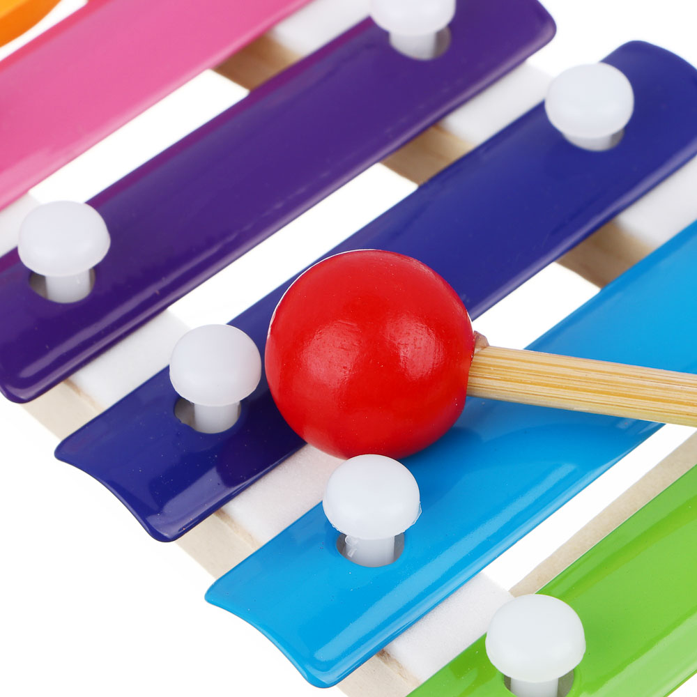 Детский ксилофон при прикосновениях издает приятные мелодичные звуки. Станет прекрасным первым музыкальным инструментом вашего крохи. Ксилофон станет отличным подарком для детей дошкольного возраста и подарит немало приятных впечатлений от первых музыкальных импровизаций. Игрушка имеет яркий дизайн. Изготовлена из безопасных материалов.