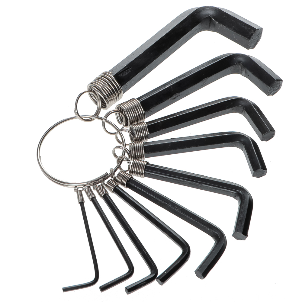 Если вы устали искать нужный вам по размеру шестигранник в огромной коробке с инструментами, то Вам просто необходим набор шестигранников! Все шестигранники соединены посредством кольца, чтобы весь набор всегда был под рукой. Ключи, выполненные из высококачественного металла, оптимизированы для работы в труднодоступных местах. Набор состоит из 10-ти шестигранников разного размера.
