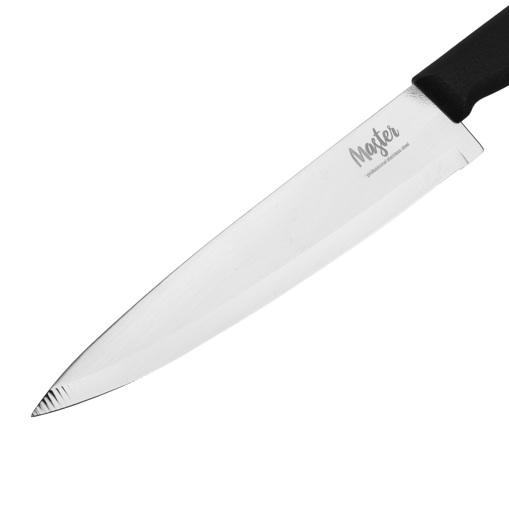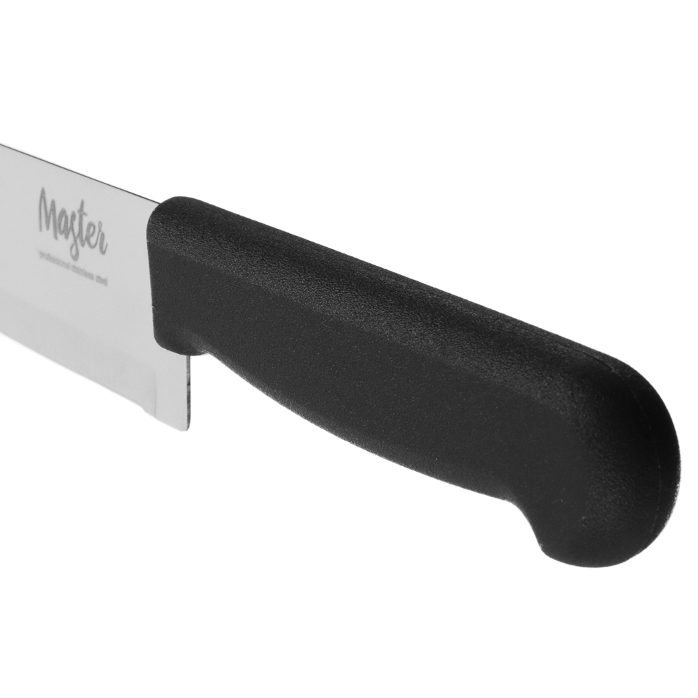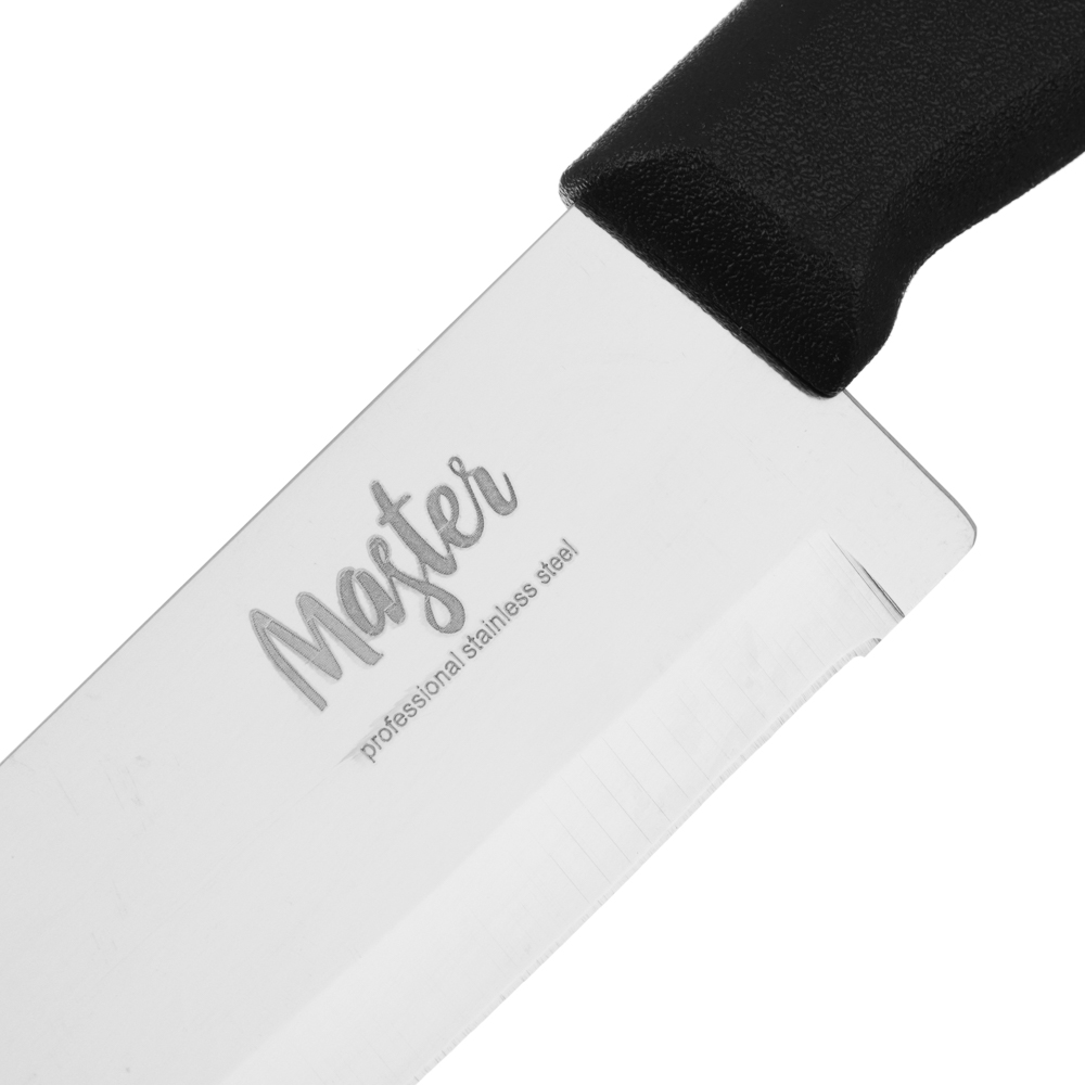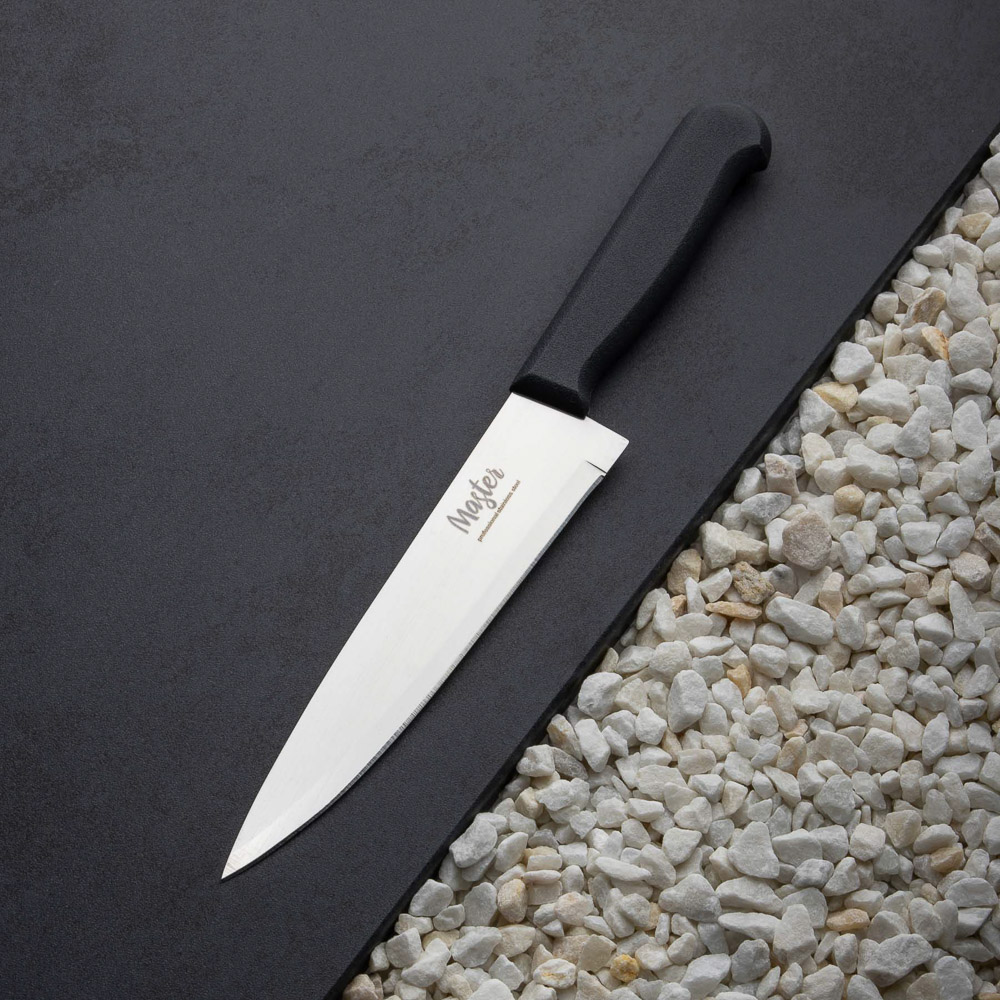 Универсальный кухонный нож Мастер с длиной лезвия 20 см - это идеальный инструмент для выполнения различных кулинарных задач на вашей кухне. Лезвие изготовлено из качественной нержавеющей стали, поэтому его прочность и долговечность не вызывают сомнений. Эргономичная пластиковая рукоятка обеспечивает надежный и комфортный захват, что особенно актуально при работе с тяжелыми продуктами. Универсальный нож подходит как для тонкой нарезки, так и для измельчения продуктов. Легко очищается от остатков пищи благодаря своей гладкой поверхности. Универсальный кухонный нож станет незаменимым помощником на вашей кухне и прослужит вам долгие годы.
