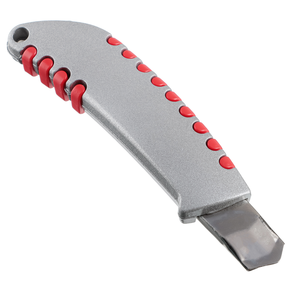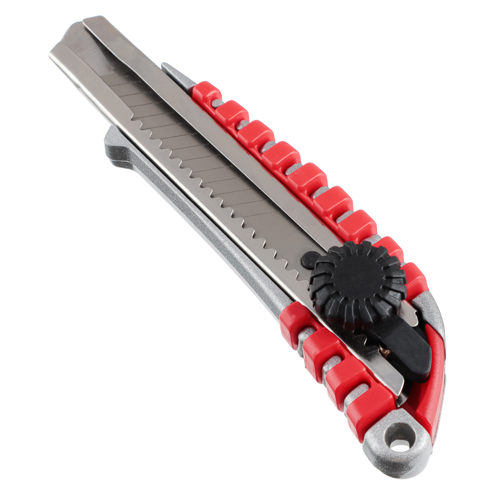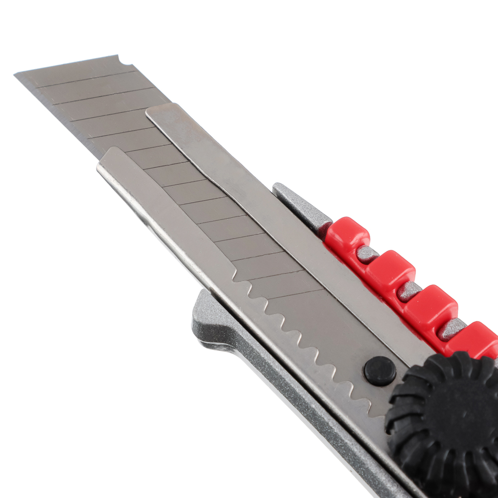 Профессиональный инструмент для точных и интенсивных работ, выполненный из прочного металла с 18-мм сегментированным лезвием. Конструкция с круглым фиксатором обеспечивает надежное крепление лезвия и исключает его смещение при нагрузках. Усиленный металлический корпус повышает долговечность ножа, делая его устойчивым к механическим повреждениям. Сегментированное лезвие позволяет легко обновлять режущую кромку, поддерживая идеальную остроту инструмента.