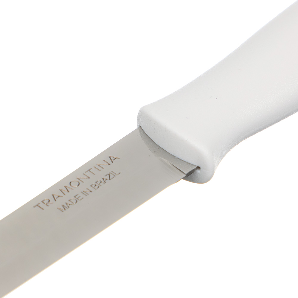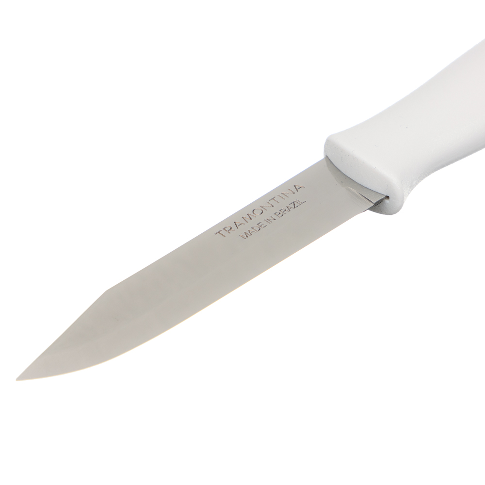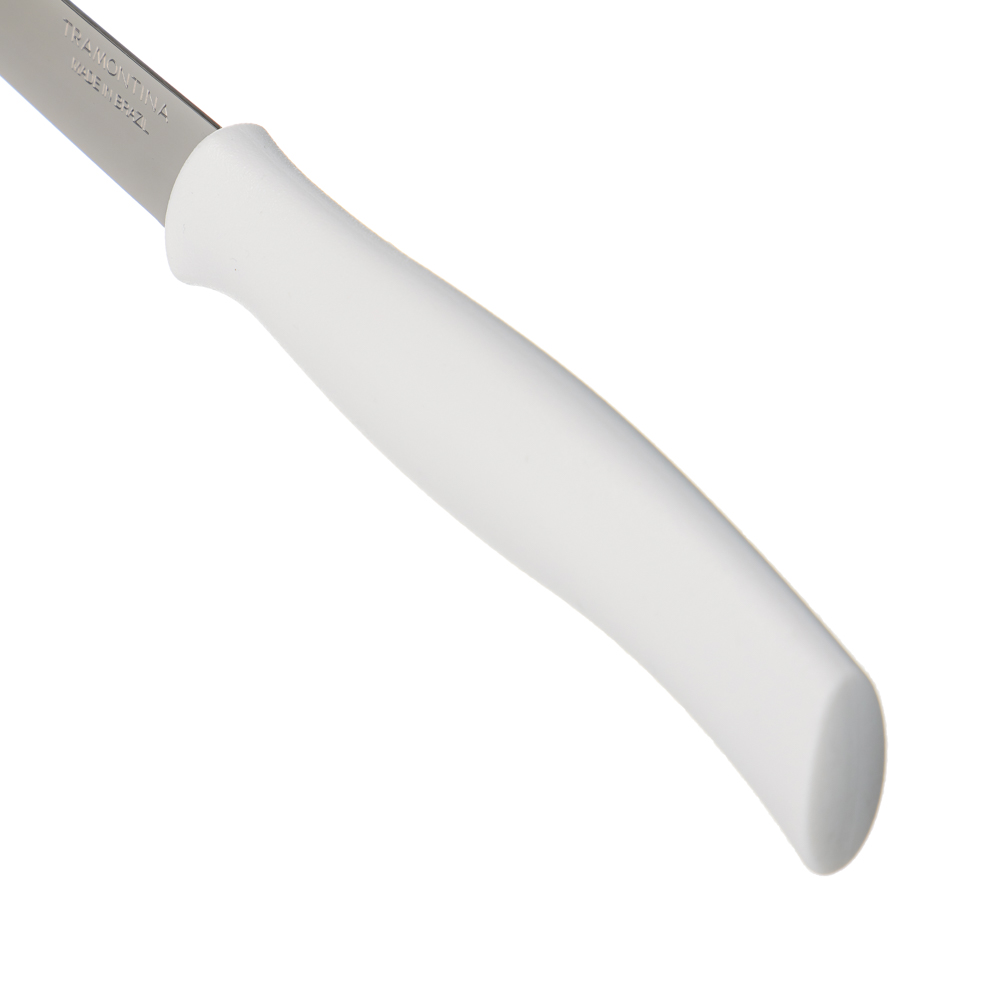 Овощной нож Tramontina Athus – это небольшой нож с классической формой лезвия, которая идеально подойдёт для резки небольших продуктов. Ручка удобная и лёгкая, выполнена из полипропилена.