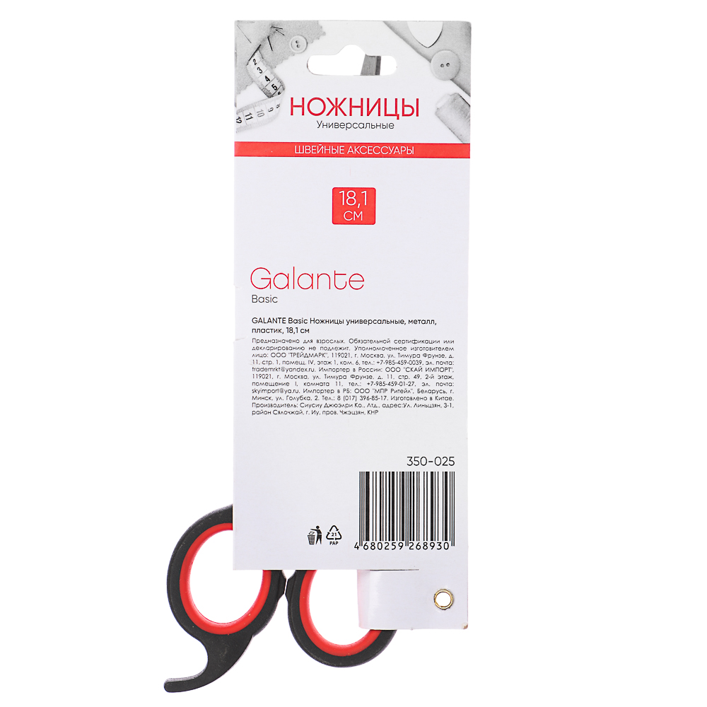 Универсальные ножницы GALANTE Basic длиной 18,1 см — это практичный инструмент для повседневного использования. Лезвия из прочного металла обеспечивают точную резку, а пластиковые ручки с упором делают процесс резки более удобным и безопасным. Ножницы подойдут для выполнения различных задач, таких как резка бумаги, ткани и легких материалов. Компактный размер и упор для пальцев обеспечивают комфорт и контроль при работе. Отличный выбор для дома или офиса.