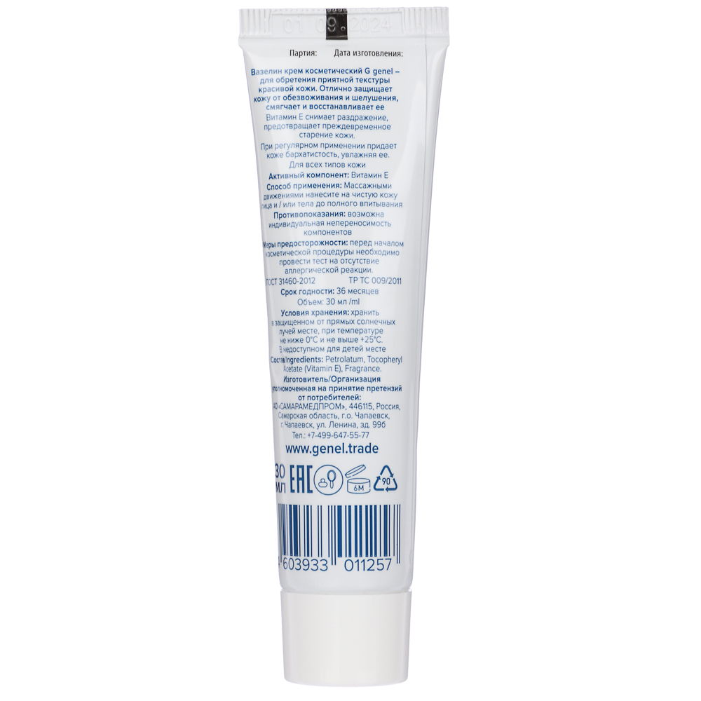 Вазелин крем косметический – идеальное средство для обретения приятной текстуры красивой кожи. Он отлично защищает кожу от обезвоживания и шелушения, смягчает и восстанавливает её. Витамин Е, входящий в состав крема, снимает раздражение и предотвращает преждевременное старение кожи.Основные преимущества:Защита кожи: Крем эффективно защищает кожу от обезвоживания и шелушения, обеспечивая ей необходимую влагу.Смягчение и восстановление: Витамин Е способствует смягчению и восстановлению кожи, делая её более упругой и эластичной.Увлажнение и бархатистость: При регулярном применении крем придает коже бархатистость, увлажняя её и делая её приятной на ощупь.