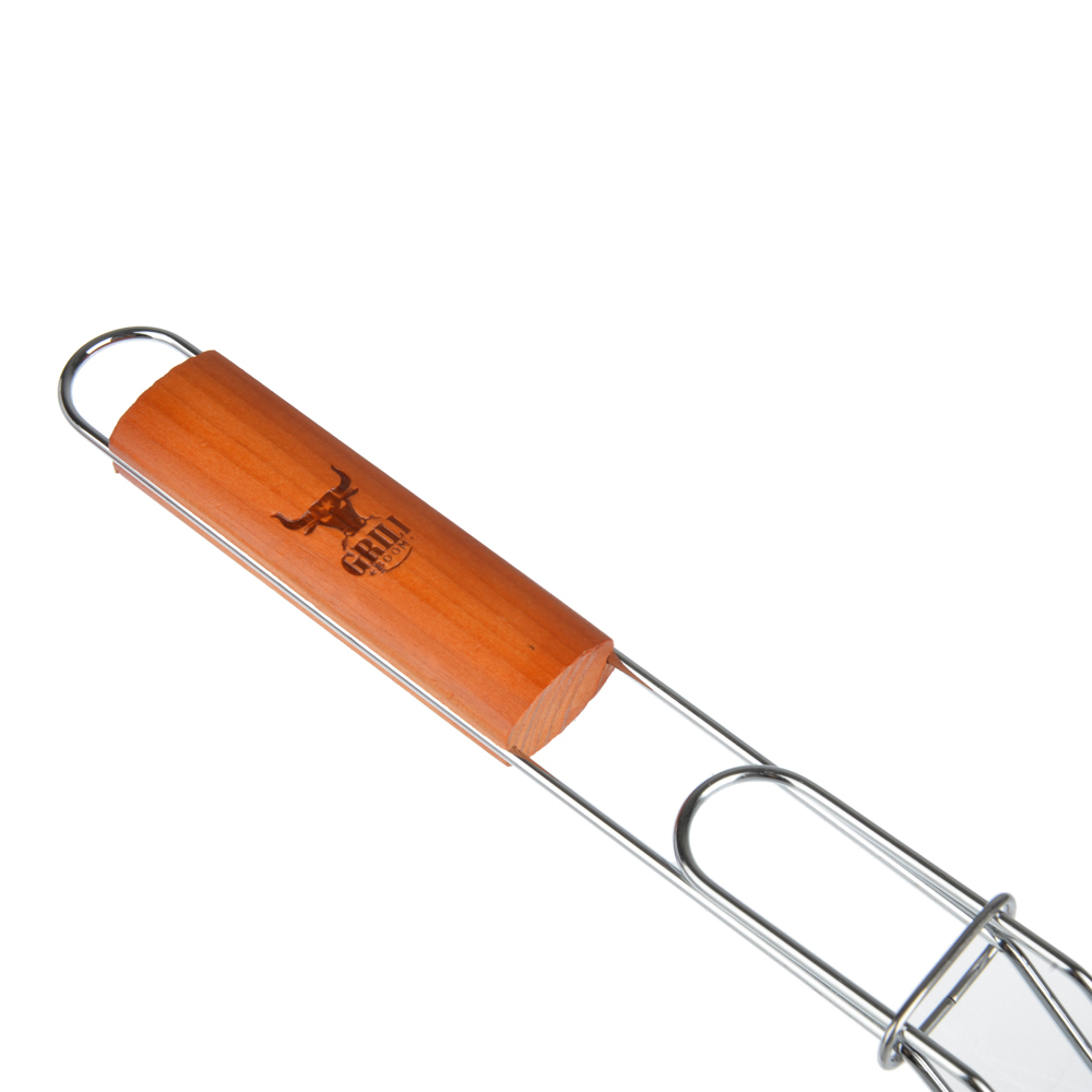 Хромированная решетка для гриля на мангал предназначена для запекания мяса или рыбы. Изготовлена из жаропрочного материала, не деформируется от воздействия высоких температур. Ручка с деревянной рукояткой, которая позволяет защитить руки от ожогов и обеспечивает удобный хват при переворачивания продуктов.