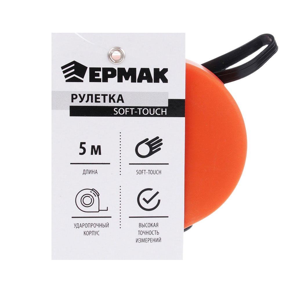 Рулетки ЕРМАК предназначены для проведения измерительных работ. Надежный сматывающий механизм и корпус из ударопрочного пластика - обеспечат долгий срок службы инструмента. Комфорт в работе придают противоскользящие резиновые вставки, а для ношения - наручная петля и зацеп на ремень! Инструмент применяется в быту и строительстве!