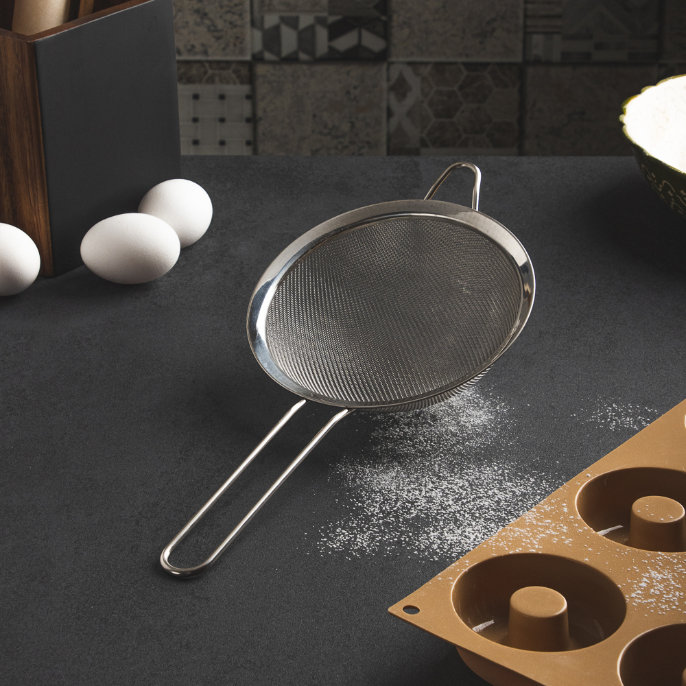 Сито из нержавеющей стали для фильтрации различных ингредиентов - от просеивания муки до процеживания чая от чаинок. Отлично выполняет свою функцию. Ситечко займет достойное место на вашей кухне.