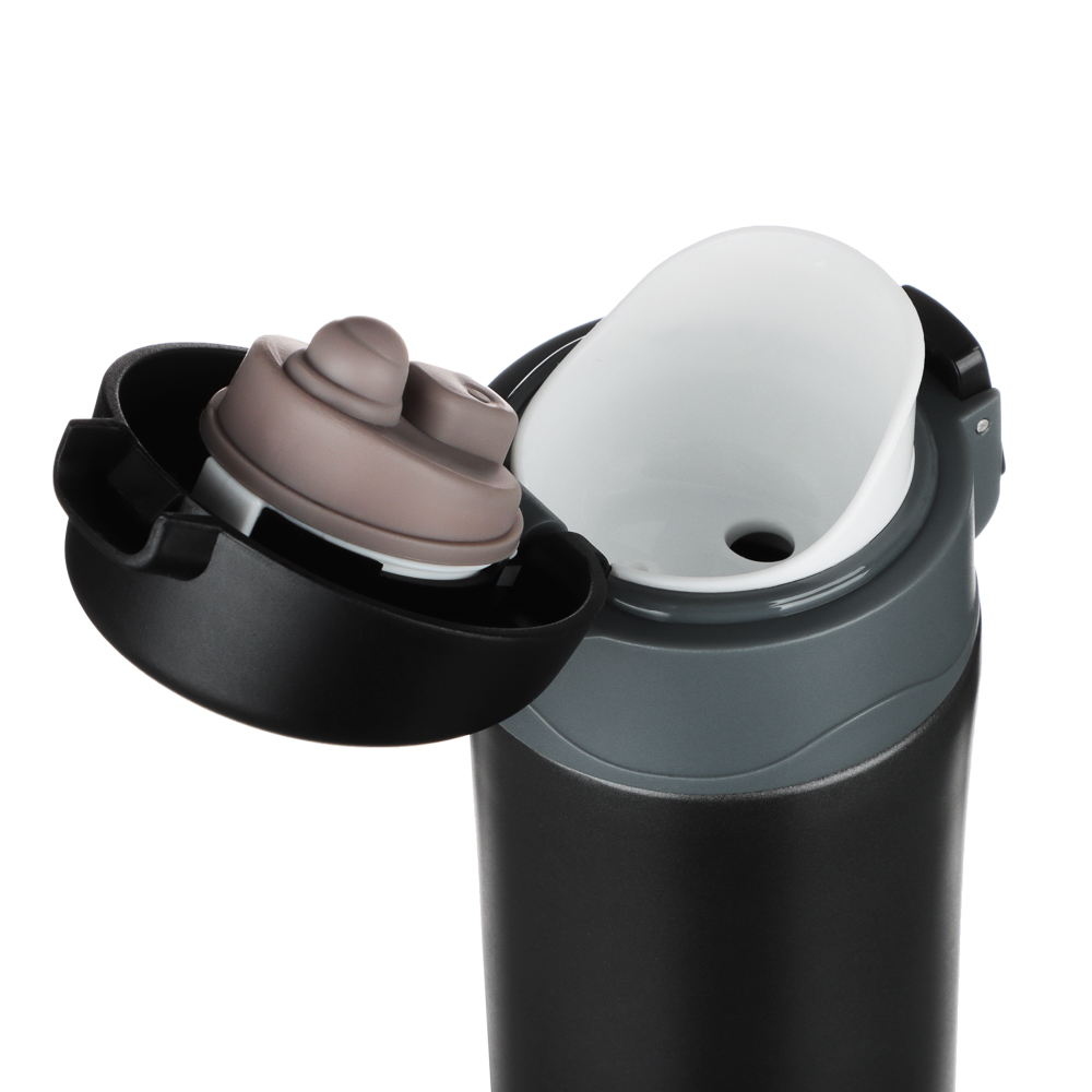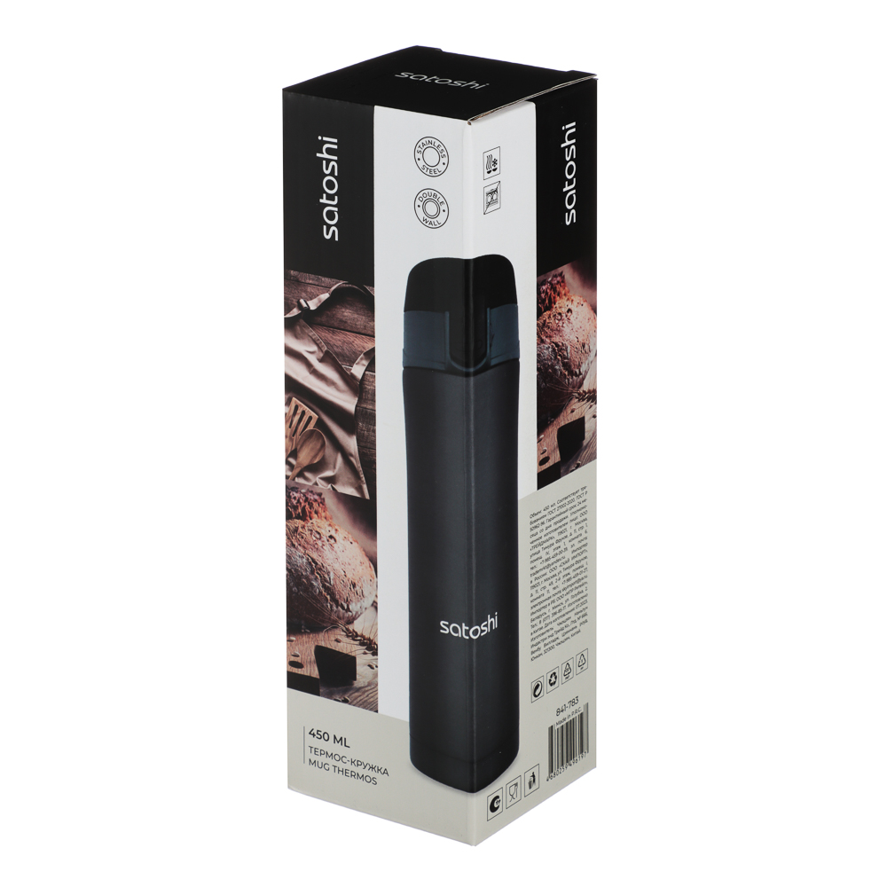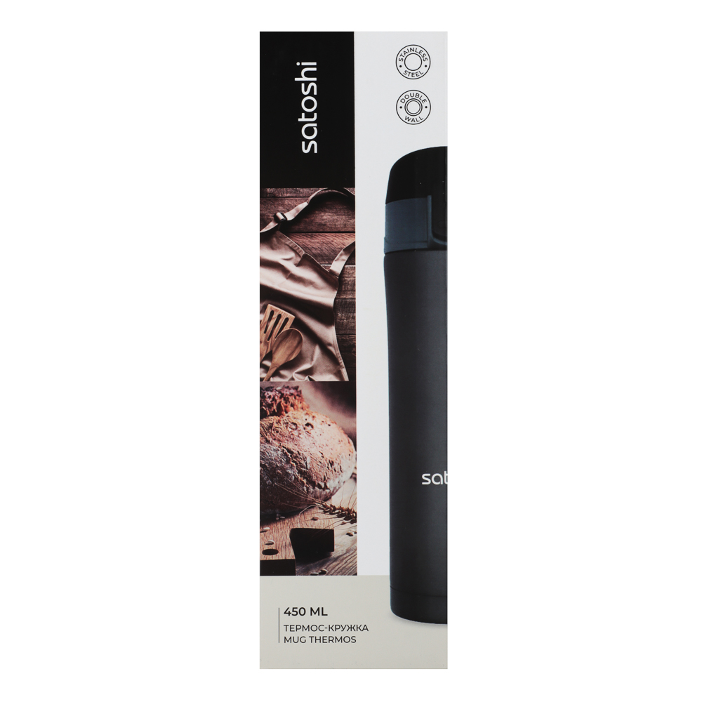 Кружка-термос SATOSHI объемом 450 мл с двойными стенками корпуса сохраняет напитки теплыми дольше обычного. Изделие выполнено из нержавеющей стали, обладающей гигиеничностью, отличными теплоизоляционными свойствами и повышенной устойчивостью к механическим повреждениям. Надежная крышка исключает проливание жидкости. Такой аксессуар удобно использовать на отдыхе, работе и в автомобиле.