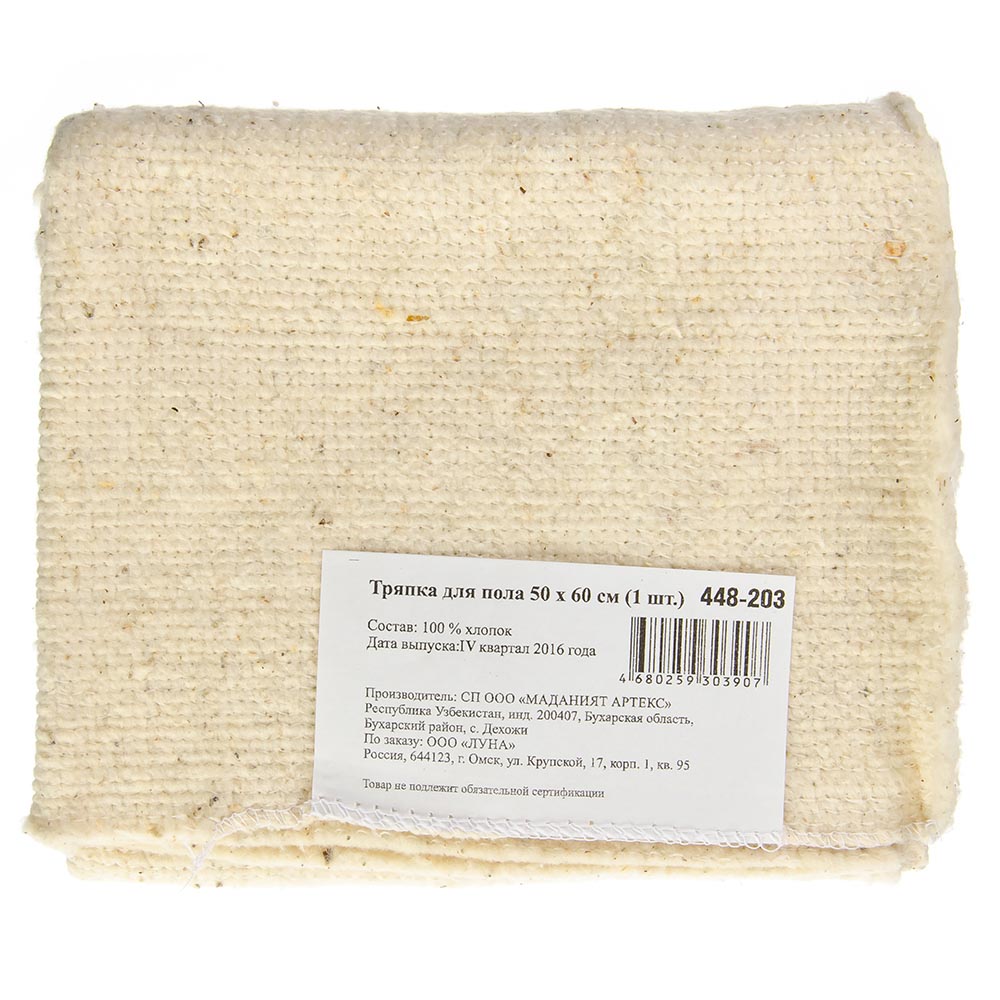 Представляем вам универсальную тряпку для пола из хлопка, которая станет вашим надежным помощником в уборке. Ее размер составляет 50х60 см, а толщина достигает 2,5 мм, обеспечивая прочность и долговечность. Изготовленная из качественного хлопка, эта тряпка обладает отличной впитываемостью и способностью удалять грязь и пыль с любых поверхностей. Благодаря своей плотности и толщине, она обеспечивает эффективную уборку, оставляя поверхности чистыми и блестящими.