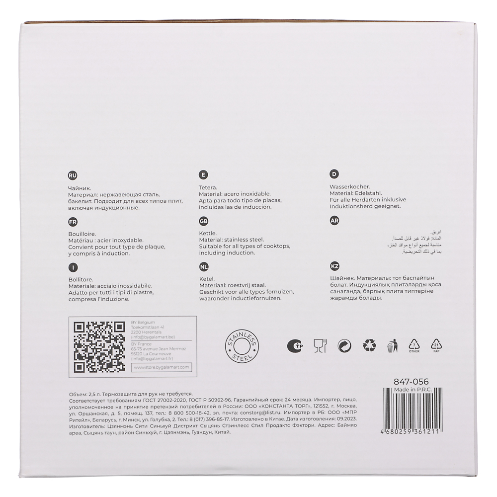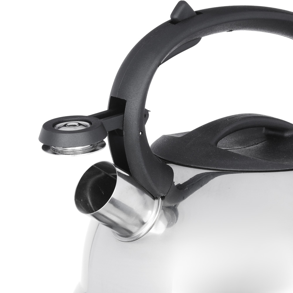 Чайник стальной "Корсика" объёмом 2,5 л предназначен для использования на всех типах плит, включая индукционные. Модель оснащена свистком, клапан которого открывается нажатием кнопки на ручке для безопасного доступа. Чайник допускает мытьё в посудомоечной машине. Корпус выполнен из нержавеющей стали. Объём 2,5 л оптимален для приготовления горячих напитков для семьи или компании. Ручка из термостойкого материала обеспечивает безопасное использование.